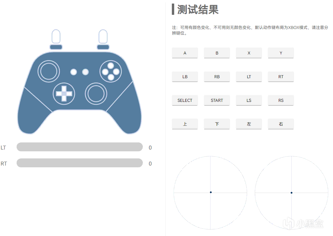 接下来手柄的测试环节,首先我们看手柄的十字键串键测试,能看到十字键的测试结果是很不错的,并没有出现串键现象。