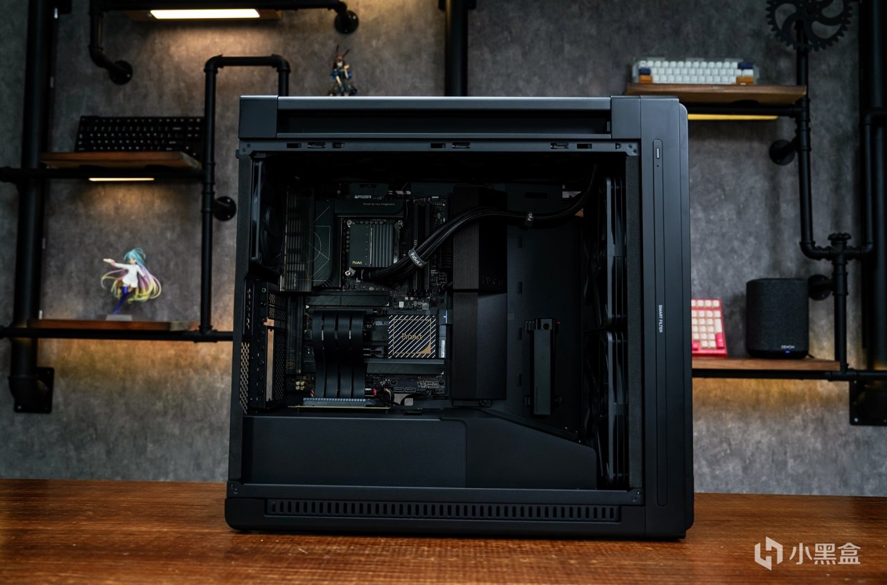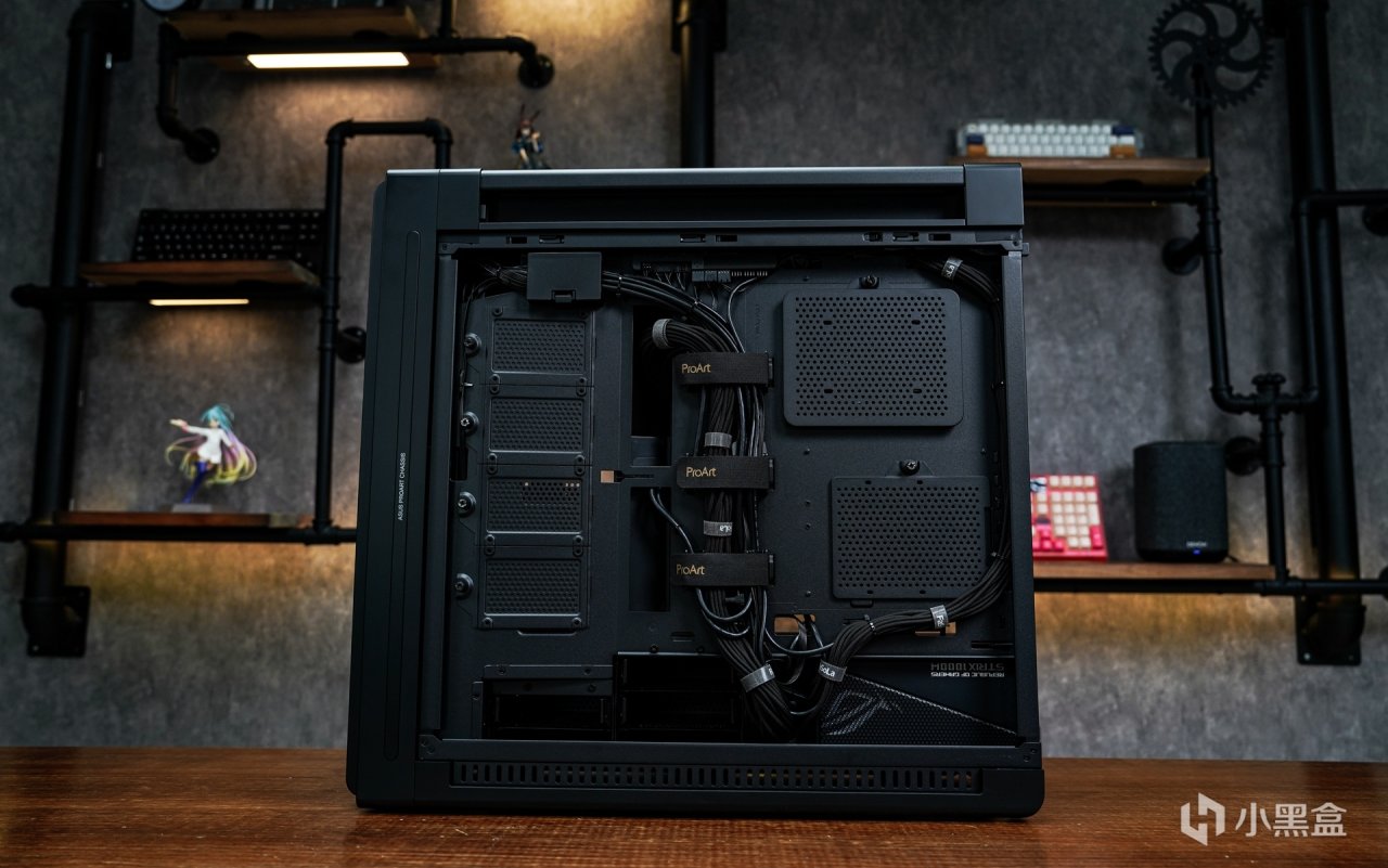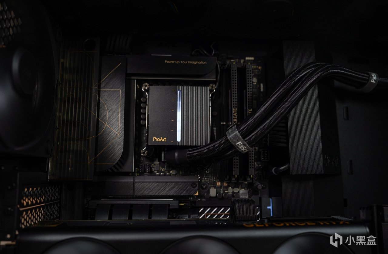 DIY主机时,除了着重性能外,还会注重其外观设计是否符合自己的审美定位。无光电脑主机市场现在也融合了更多的跨界元素。例如这次的pro art主机就是定位设计师、艺术创作者推出的具有市场定位的针对性产品,将创作者元素融入主机设计中。华硕推出这个定位的产品确实有助于提升品牌影响力和市场竞争力。不得不说,搭配完成后整套主机也确实精准的定位在创作者这个概念上。对比张扬的灯效主机,现在主流无光主机更多的定位在时尚的设计,在这套以全套PA系列打造的主机上体现的淋漓尽致。