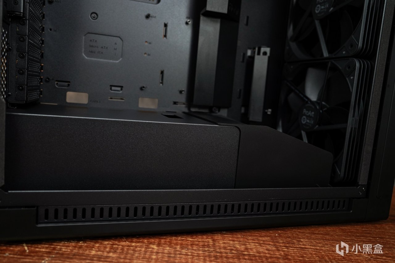 箱体内部“超大杯”的兼容设计最大兼容E-ATX主板和450MM长度显卡,虽然在定位上是中塔机箱,但是从实际兼容可以看到这款机箱内部采用的是全塔兼容方案设计。