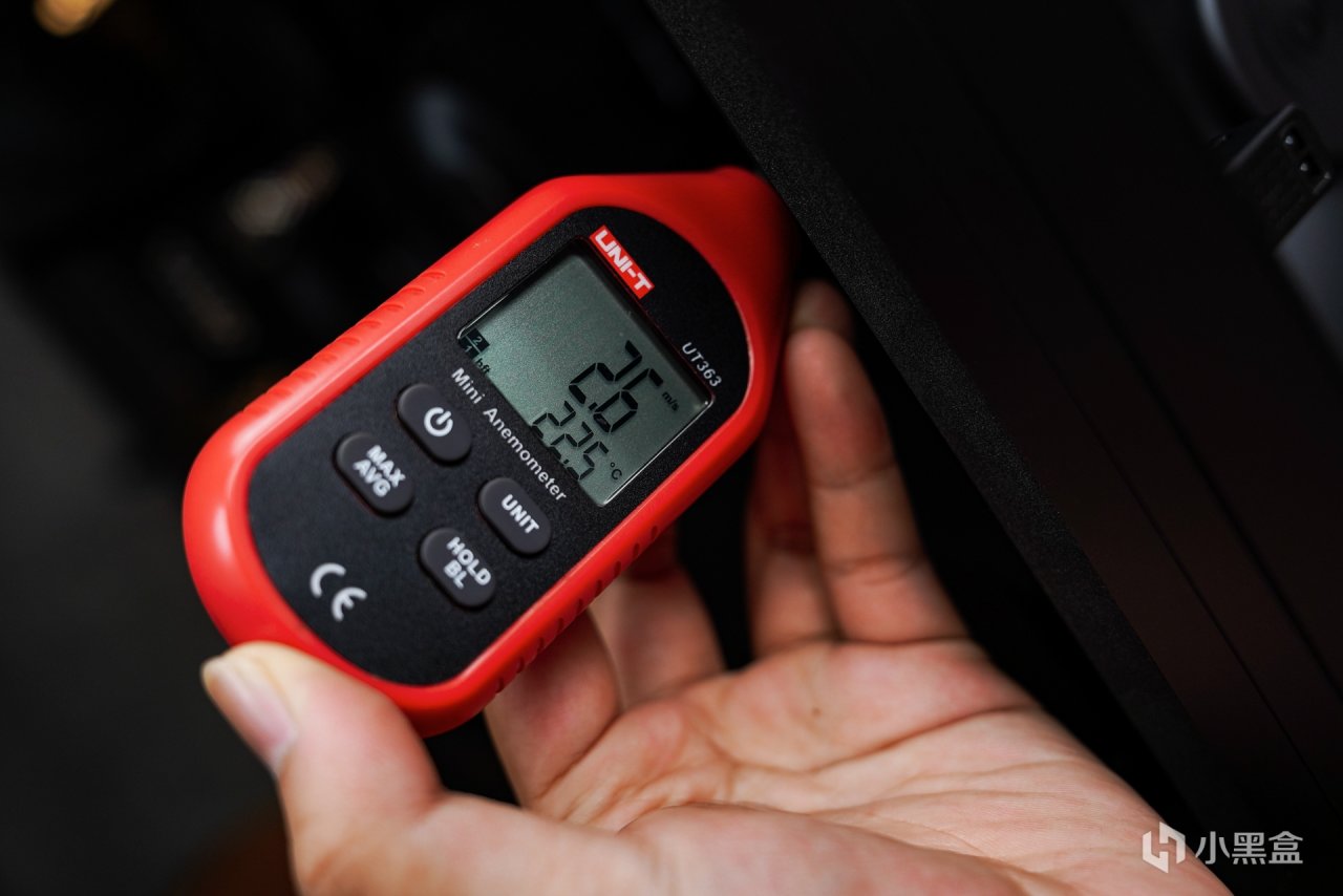 风速仪测速实测风压:最大风压可以达到2.6mmH20。而噪音在全速时环境噪音是51分贝左右,当然不排除环境的杂音和机箱内部硬件的运行。要是安装上侧面玻璃的话隔开一部分噪音应该还会噪音分贝会更小。