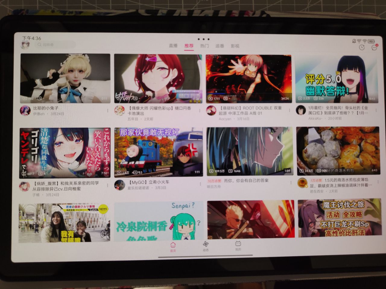 要说为什么我不喜欢刷b站,主要还是因为这个HD版b站,它的UI对我而言还是不太习惯。而且不能竖屏,只能横屏。但是平板的普通b站,还不如HD版,它那个UI根本没做适配,故而没咋刷b站。
