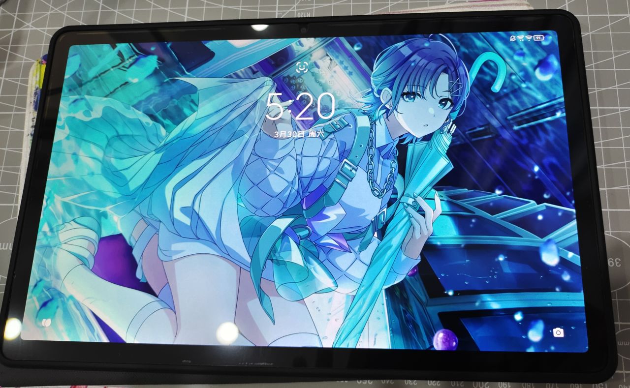 这张图是我刚拿到平板没几天,钢化膜还没贴的时候的裸机表现。(在吃饭真不好意思)