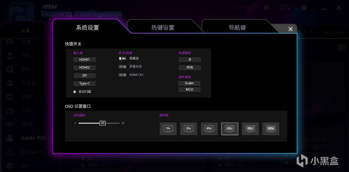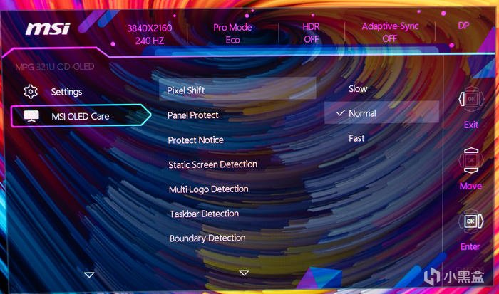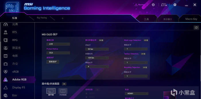 调节选项往下拉则是MSI OLED保护功能的各个调节选项,软件界面确实比菜单更一目了然