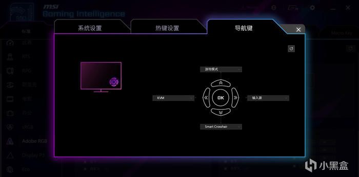 Gaming Intelligence 菜单,主要还是微星的AI智能准心与OPTIX狙击镜,当然微星的官网还可以下载专用的Gaming Intelligence软件,可直接在windows中调节,这里就不赘述了