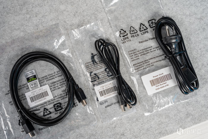 标配的HDMI 2.1线缆、USB2.0线缆、电源线