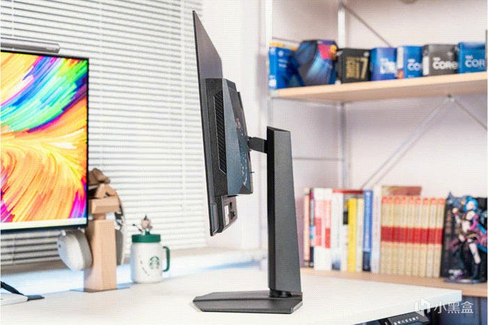 支架竖起的状态,还是非常厚实稳重的,不过应该也会有很多小伙伴采用显示器支架的固定方式,不过需要注意的是,通过显示器支架调整角度时,千万切忌直接掰屏幕调整位置或者角度
