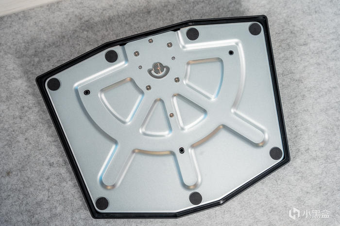 背面是7个橡胶脚垫和底座支架手拧螺丝,整个底座非常扎实