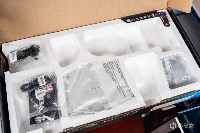 取下泡沫之后下层则是显示器的本体和右侧的支架