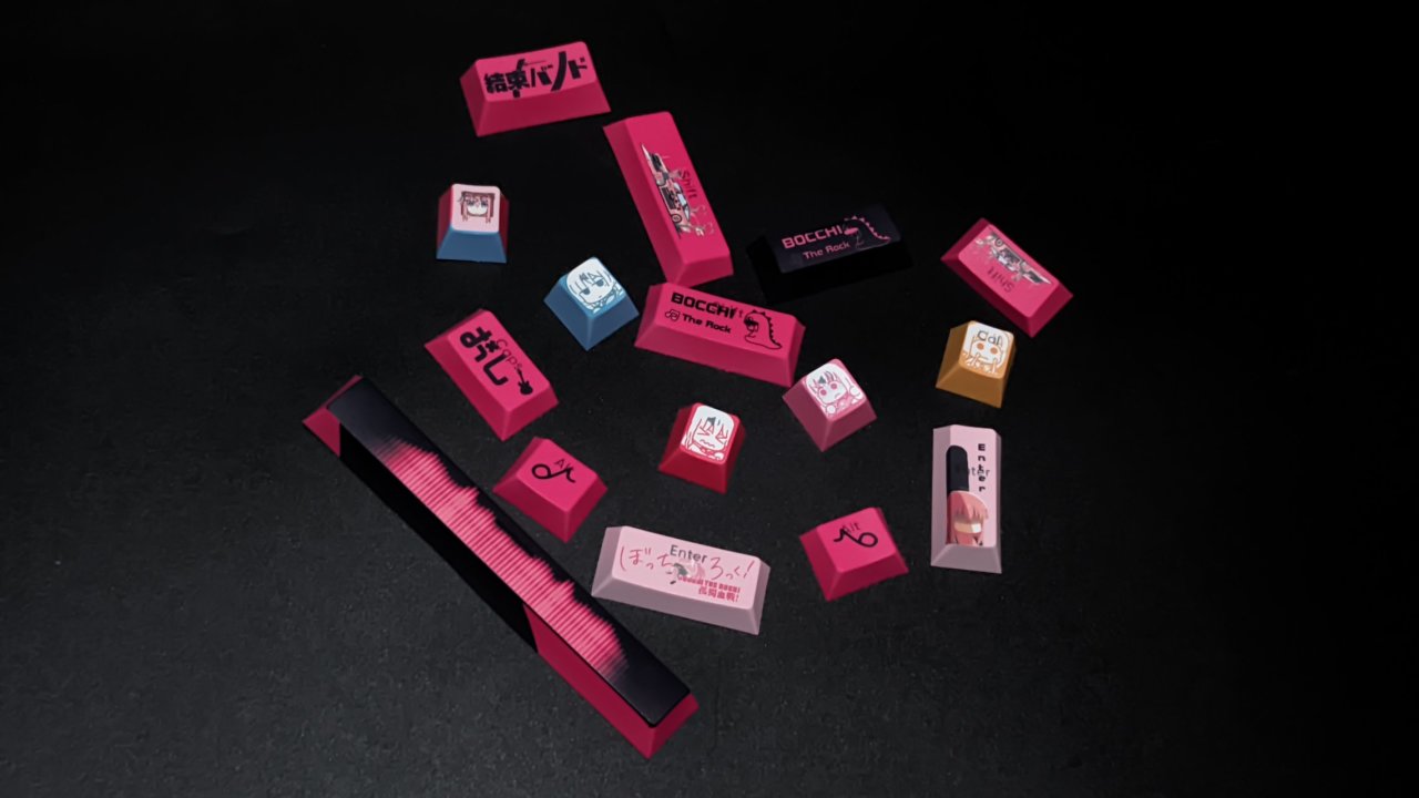 我手中的这款产品,是以二次元角色《孤独摇滚》中的波奇酱为设计主题的,当然《孤独摇滚》中并不止波奇酱一位,你还可以选择其他角色为主题设计的键帽
