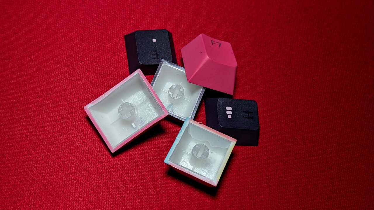 ●pbt材质,这种材质的价格稍高,加工成本也不低,但它的耐用性强,不容易出现打油,手感舒服且有一种磨砂质感