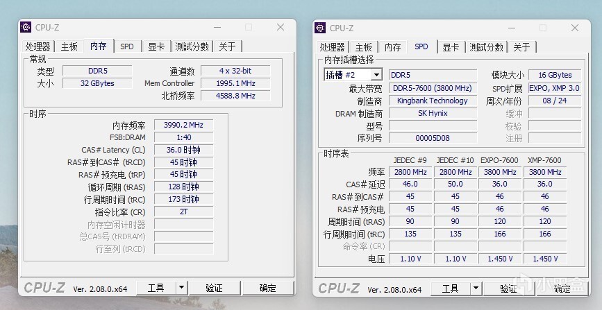保持配置重启电脑,运行CPU-Z,我们看内存频率已经是8000MHz了。