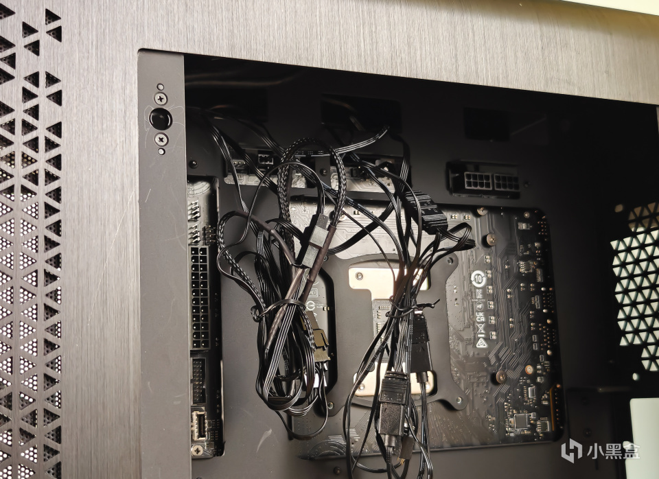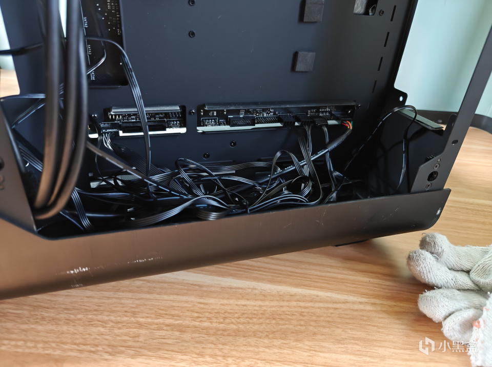 至于背面,反正看不见,强迫症的可以理线的更整洁,至于我这种理线盲,就大致的放一放好了。背插主板的各个接口接线,由于无需再穿越到前面,都是比较轻松的。加上这边有90mm进深的空间,排线和插接都是很轻松的,降低了安装难度。