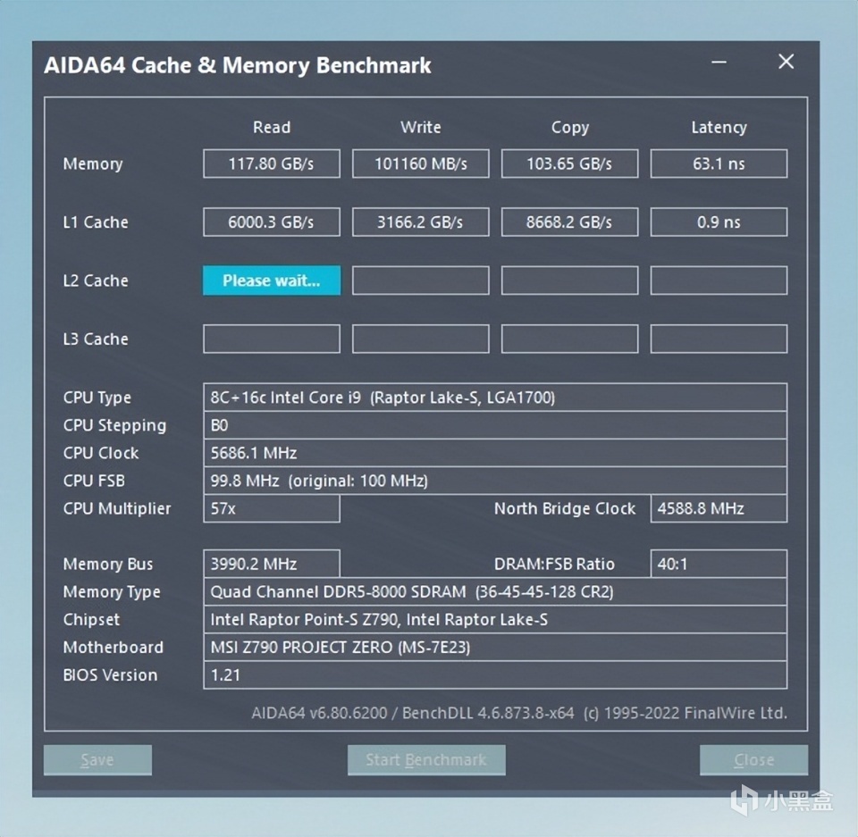 运行AIDA64内存测试,读写速度均超过了100GB/s,延迟仅63.1ns。