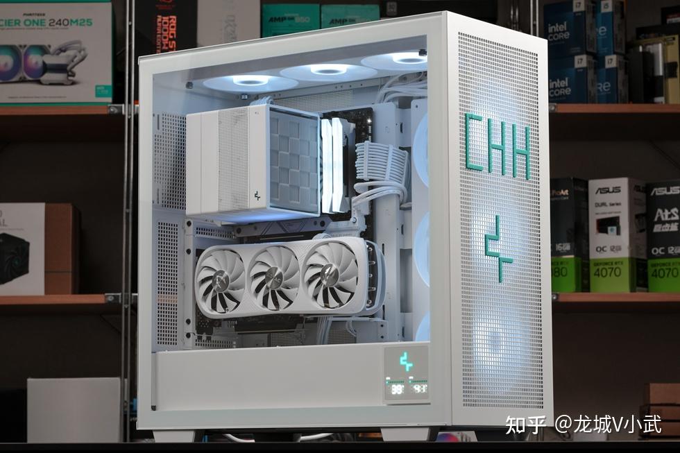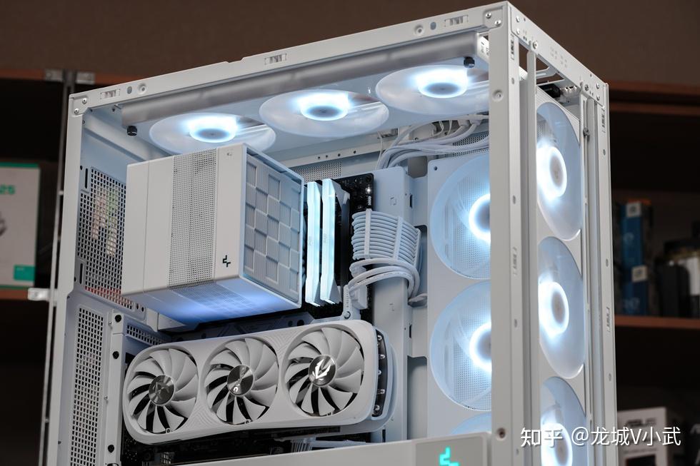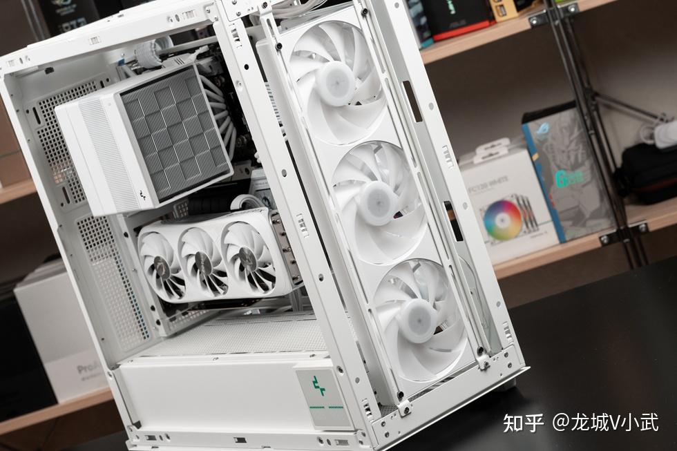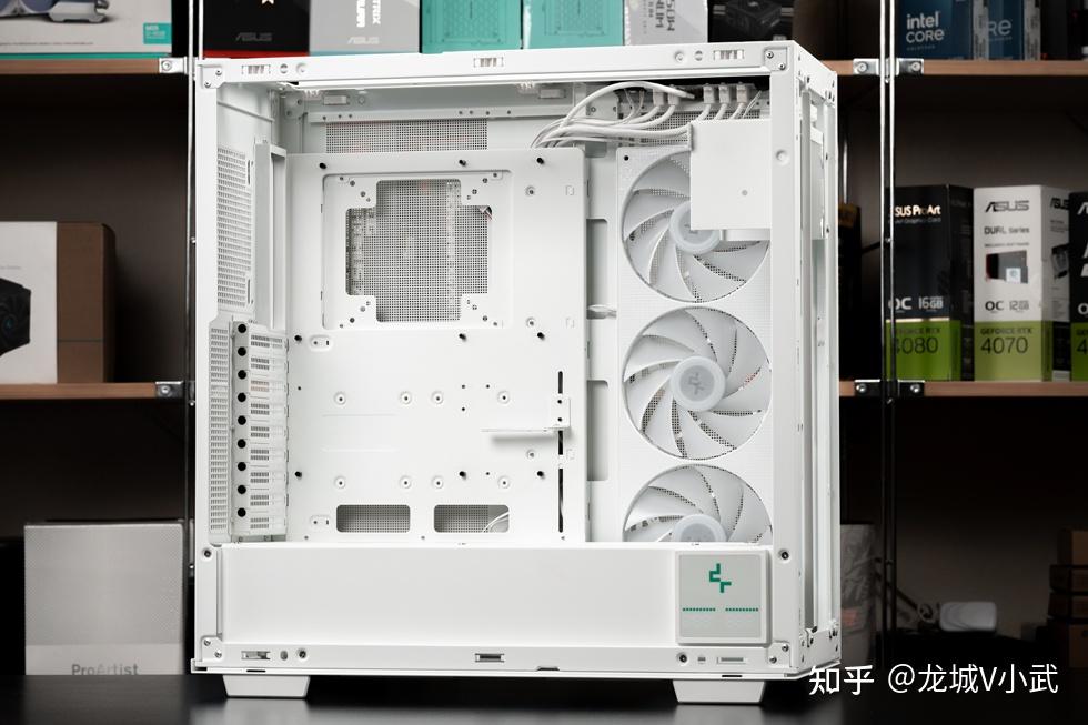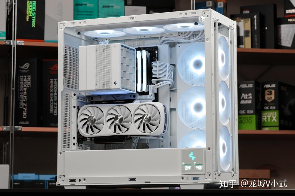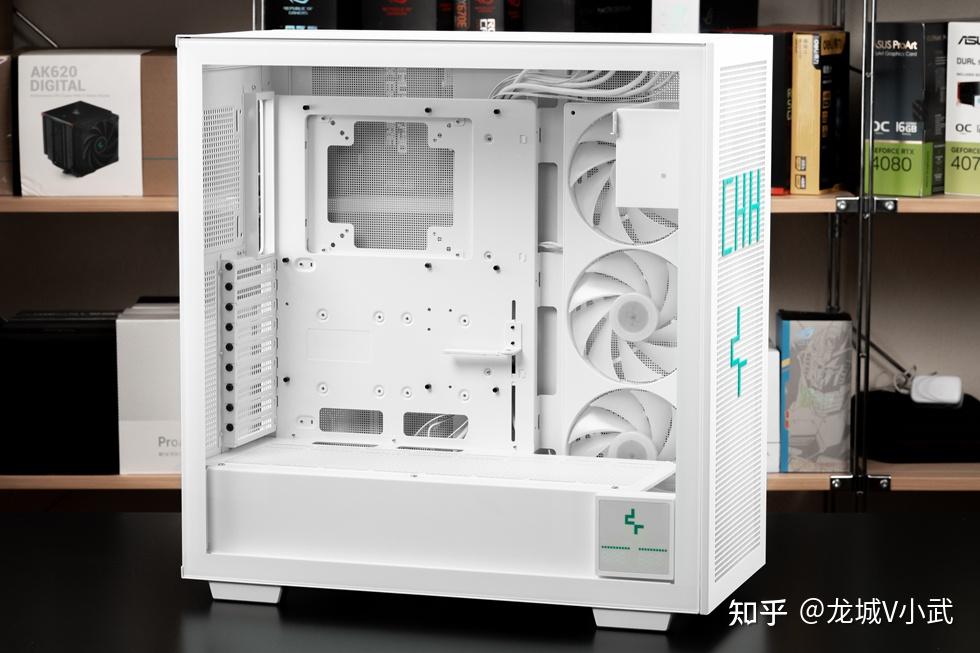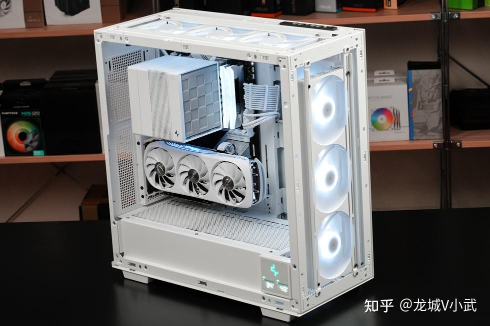 很久没碰到好玩的箱子了,今天要分享的是一套全塔机箱的装机方案:机箱使用的是九州风神最新推出的墨菲斯数显机箱,此款机箱是九州风神最新推出的重量级明星产品,这是一款功能强大、设计独特且自由度很高的模块化机箱。机箱标配双重构型套件和PCIE4.0显卡垂直安装套件,通过更换对应的背板和后置板,可实现单/双仓构型变化,可选择电源底置、前置或背置的安装方式,具有高兼容性和宽敞的布局,另外还配备有一包像素块可供玩家在前面板上DIY图案或者文饰,无论是对于专业的MOD玩家还是对于喜欢DIY的发烧友来说,这款机箱都是一个值得考虑的选择。其他硬件方面:板、U使用的是Z790吹雪S主板搭配英特尔14代14700K处理器的组合,显卡则是来自索泰的RTX 4080S AMP EXTREME AIRO月白,用料豪华具备高性能以及颜值,月白的配色也是打造白色主机方案的优选。电源则还是使用九州风神的PX1000G ATX 3.0电源为整个平台提供源源不断稳定可靠的电力。
