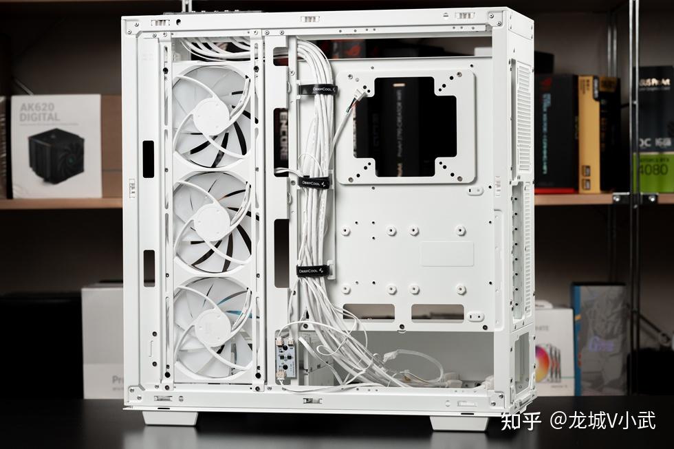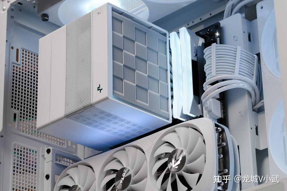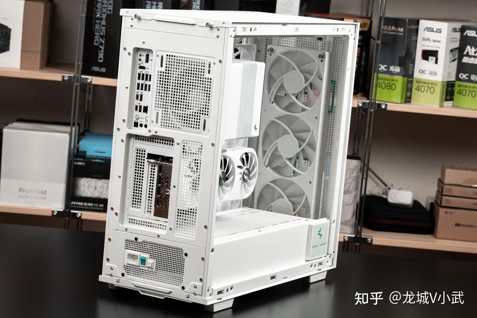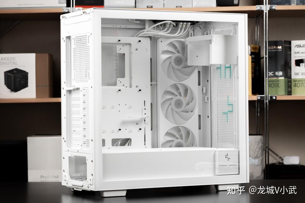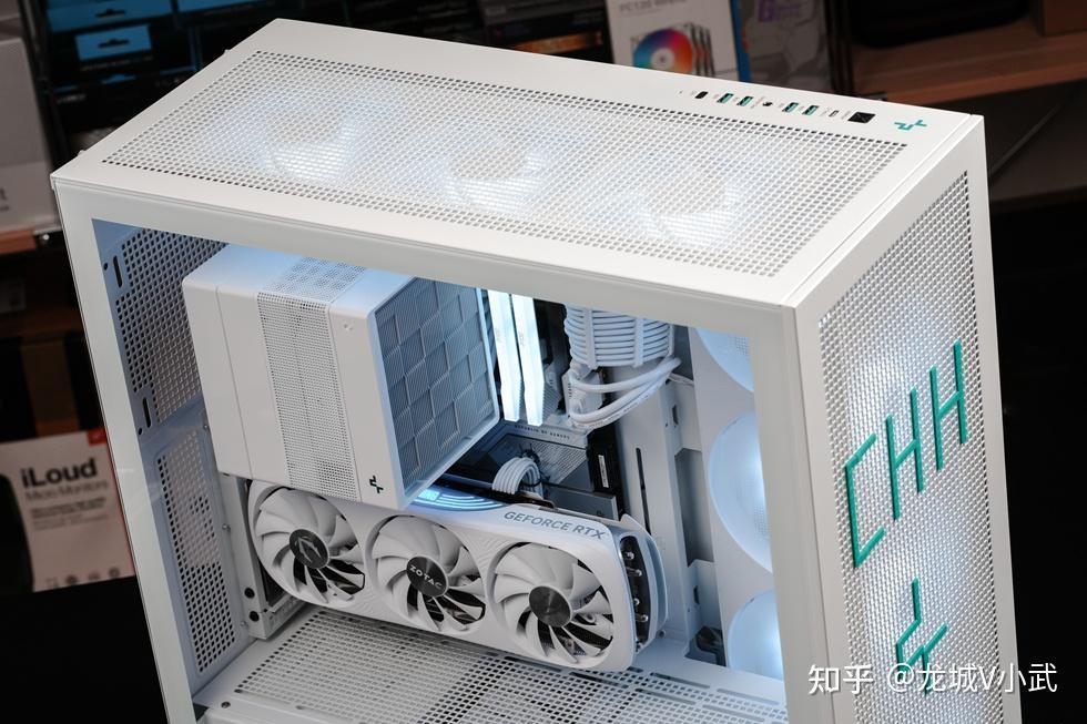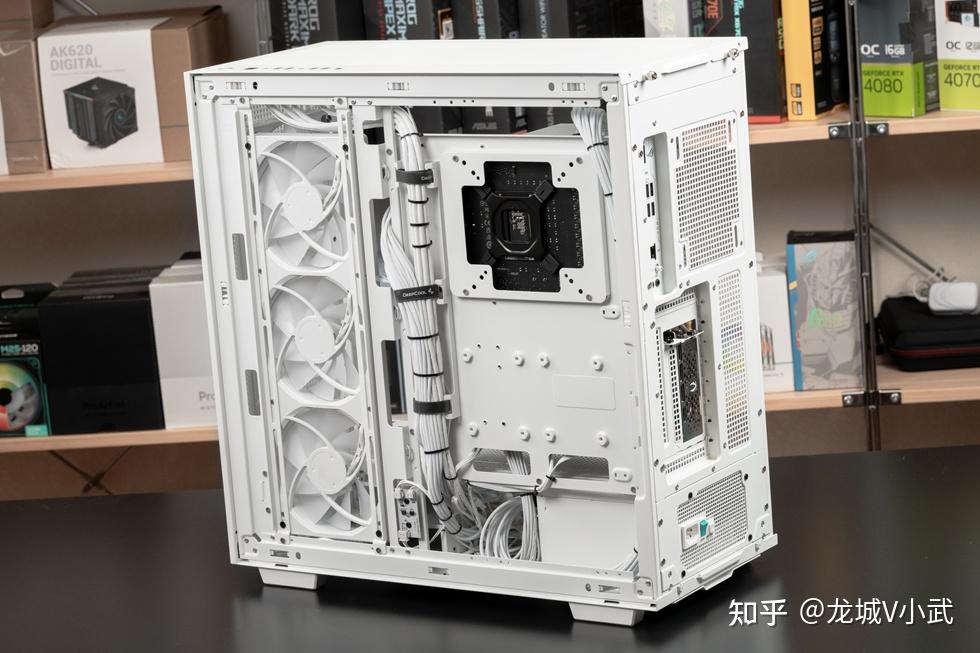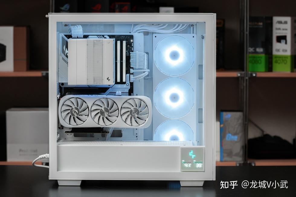 很久没碰到好玩的箱子了,今天要分享的是一套全塔机箱的装机方案:机箱使用的是九州风神最新推出的墨菲斯数显机箱,此款机箱是九州风神最新推出的重量级明星产品,这是一款功能强大、设计独特且自由度很高的模块化机箱。机箱标配双重构型套件和PCIE4.0显卡垂直安装套件,通过更换对应的背板和后置板,可实现单/双仓构型变化,可选择电源底置、前置或背置的安装方式,具有高兼容性和宽敞的布局,另外还配备有一包像素块可供玩家在前面板上DIY图案或者文饰,无论是对于专业的MOD玩家还是对于喜欢DIY的发烧友来说,这款机箱都是一个值得考虑的选择。其他硬件方面:板、U使用的是Z790吹雪S主板搭配英特尔14代14700K处理器的组合,显卡则是来自索泰的RTX 4080S AMP EXTREME AIRO月白,用料豪华具备高性能以及颜值,月白的配色也是打造白色主机方案的优选。电源则还是使用九州风神的PX1000G ATX 3.0电源为整个平台提供源源不断稳定可靠的电力。