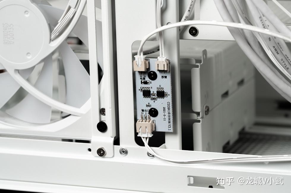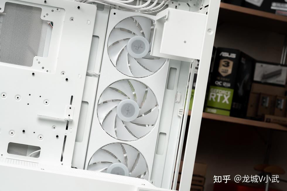 机箱内正右侧位置预装了一把三联一体的140mm*3风扇,并支持ARGB灯效控制。