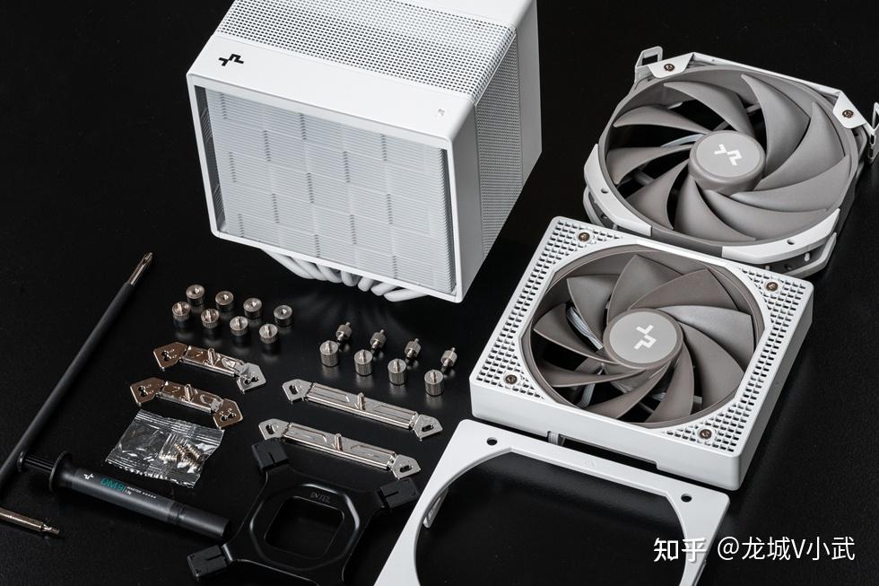 包装附件非常丰富:风扇拓展支架、一大支DM9硅脂、多功能金属底座、硅脂刮刀、酒精清洁棉、全平台扣具以及安装用的螺丝刀。