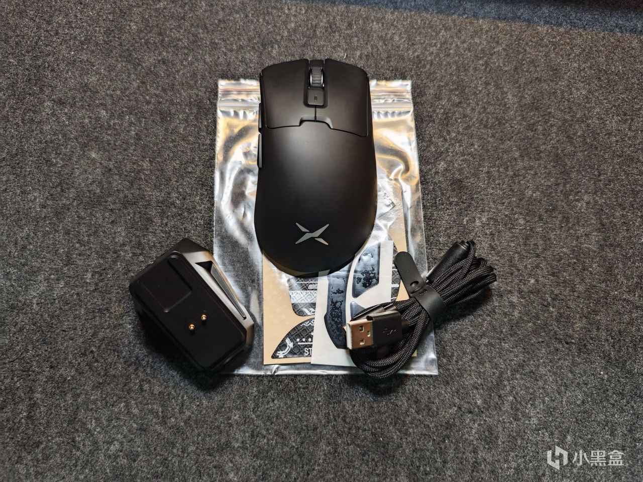 全家福:鼠标、RGB充电底座、一个非常软质感非常不错的伞线、橡胶防滑贴、脚贴、说明书。