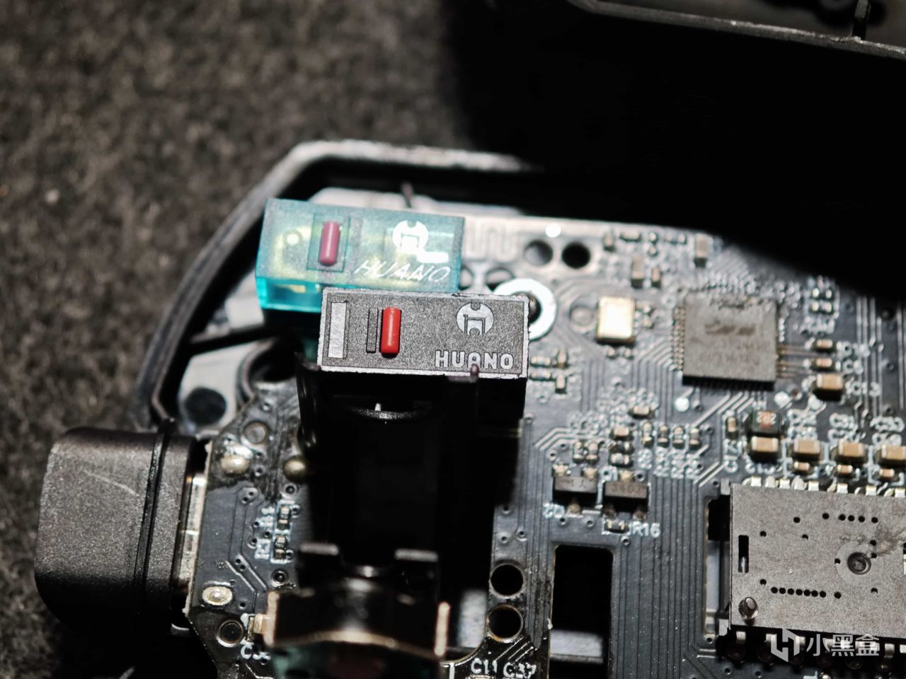 鼠标的侧键采用了独立小板的设计整体按压手感非常的出色,不会出现一些按压到底手感不一致的问题。微动采用的是华诺的黑壳。