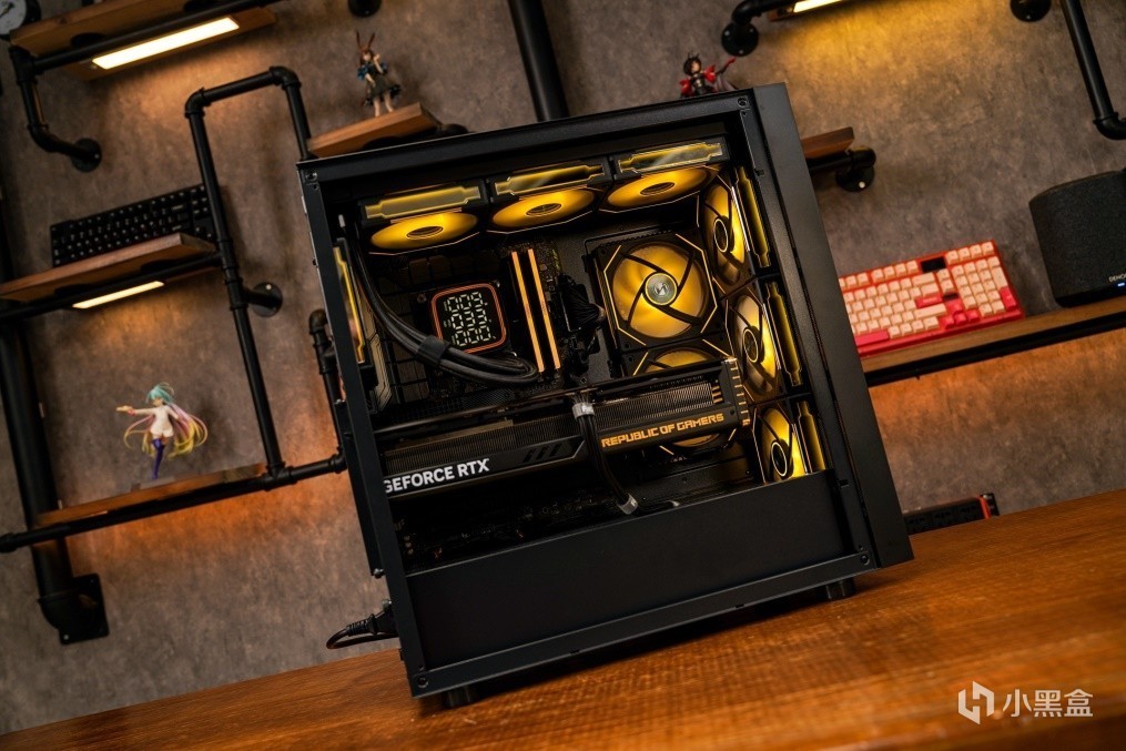 亮机后,顶部可以自定义1680万色,预设12组灯效、4组可存储模式还有8组独立的LED区域的ARGB灯效无论是色调纷呈的幻彩还是清新脱俗的拼色组合亦或是常用的纯色搭配都可以展现出不同的效果,搭配什么风格的配色都能轻松驾驭的。