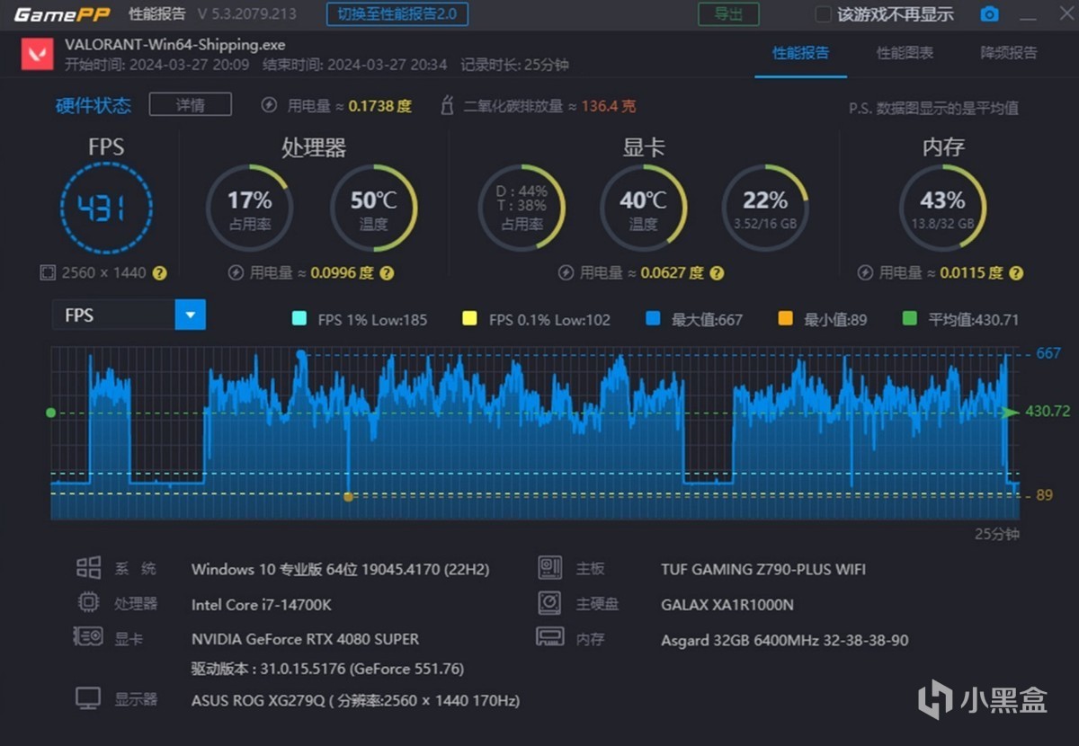 6400和7200两种不同的频率在游戏中的帧数表现又会有什么不同吗?下面就以无畏契约(VALORANT)和绝地求生(PUBG)的表现,6400频率下无畏契约通过实时监控帧数平均帧数为431 FPS, 7200频率下无畏契约平均帧数提升到500 FPS。.