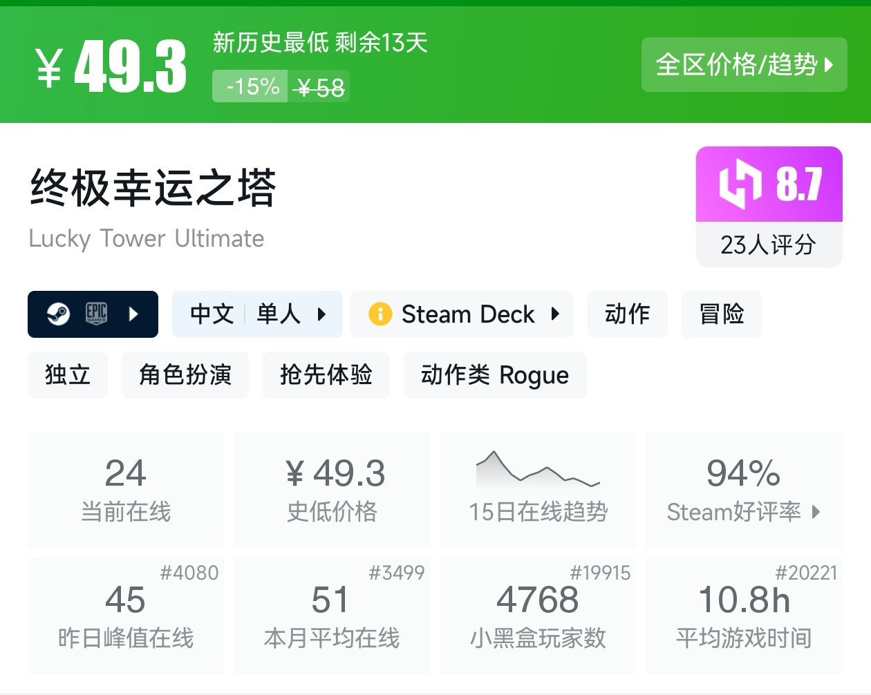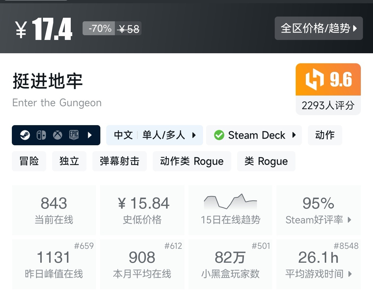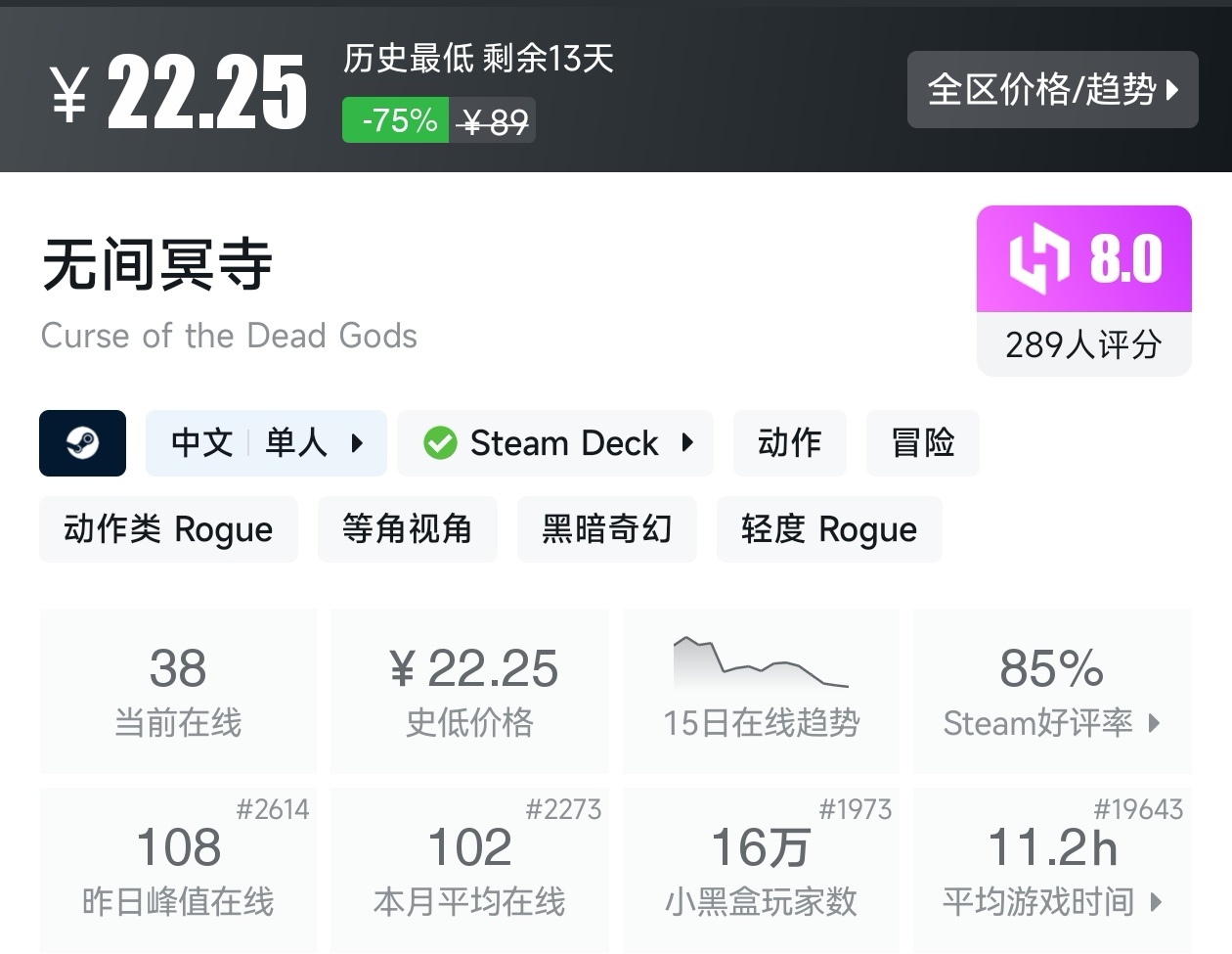 大家好,大家都知道今天冬促已经开始了,那既然是大促,怎么能少的了我们的肉鸽游戏呢,而且这次冬促有相当多的肉鸽游戏都迎来了新史低,接下来,我将为大家汇总冬促期间进行折扣的肉鸽游戏,希望能够帮助到各位盒友,当然,我玩过的都会用心写出一份推荐理由。