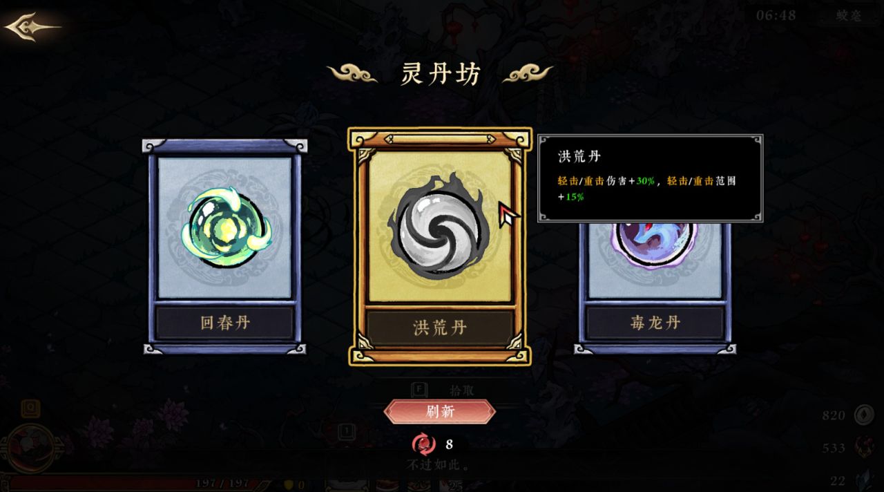 不过由于该类别可遇不可求,所以大家最好把它们当个添头。的确每局都能遇到,但时机无法掌控。希望制作组加一点稳定获取传说丹药的方式,比如新增天赋等。
