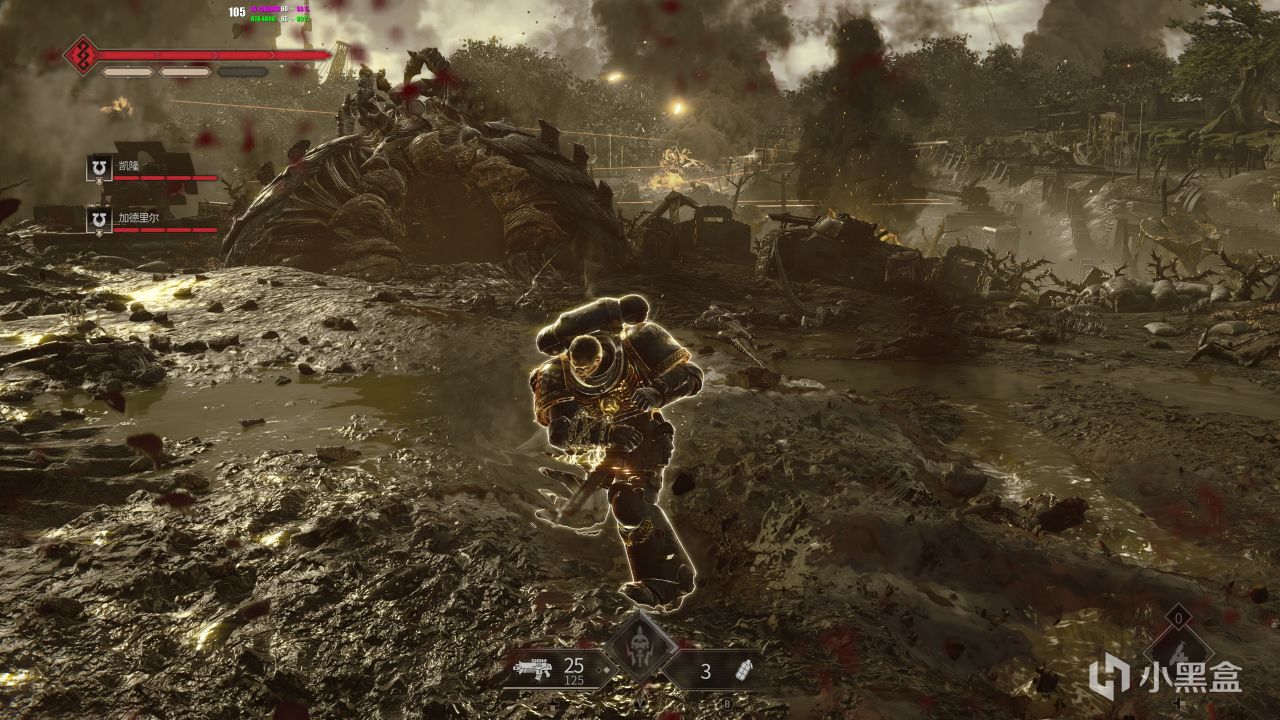 游戏的体验上,毋庸置疑是《星际战士2》的爆杀的爽感。我操作的泰图斯,亲身去体验星际战士为帝皇效忠的独特魅力。本作的开发商是曾开发过《僵尸世界大战》的Saber Interactive,制作组对宏大战斗场面、海量单位同屏出演有着超乎异常的经验,很明显他们把这种经验也带到了《星际战士2》里,同样是炮火纷飞的战场,面对如潮水般涌入的泰伦虫群,以及燃烧爆炸坠毁的太空战舰等场景,让我这个萌新近距离的直观感受到战锤系列设定下的真实星际战斗的残酷。