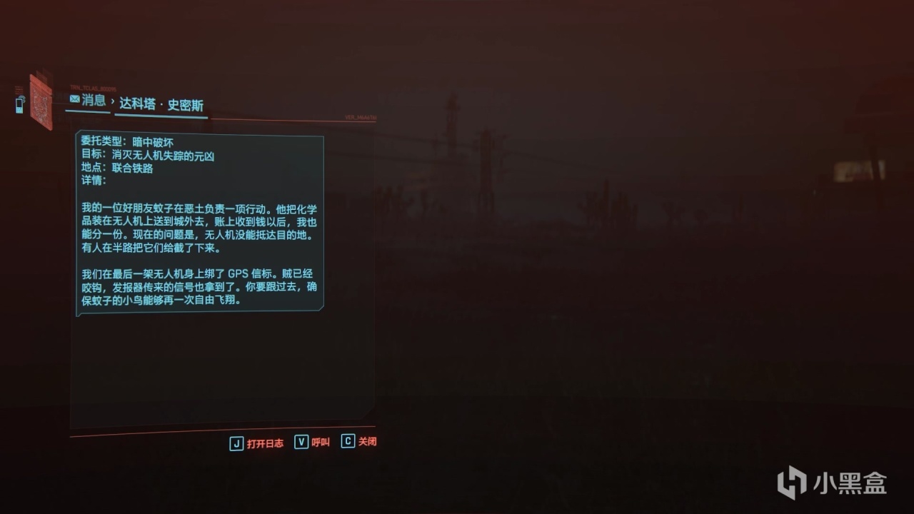 达科塔和朋友通过无人机从事毒品贸易,最近的一架无人机却无故失踪,达科塔委托V去调查情况。最终玩家会发现,夜游鬼在坏咖的指导下,黑掉无人机,抢走了货物。