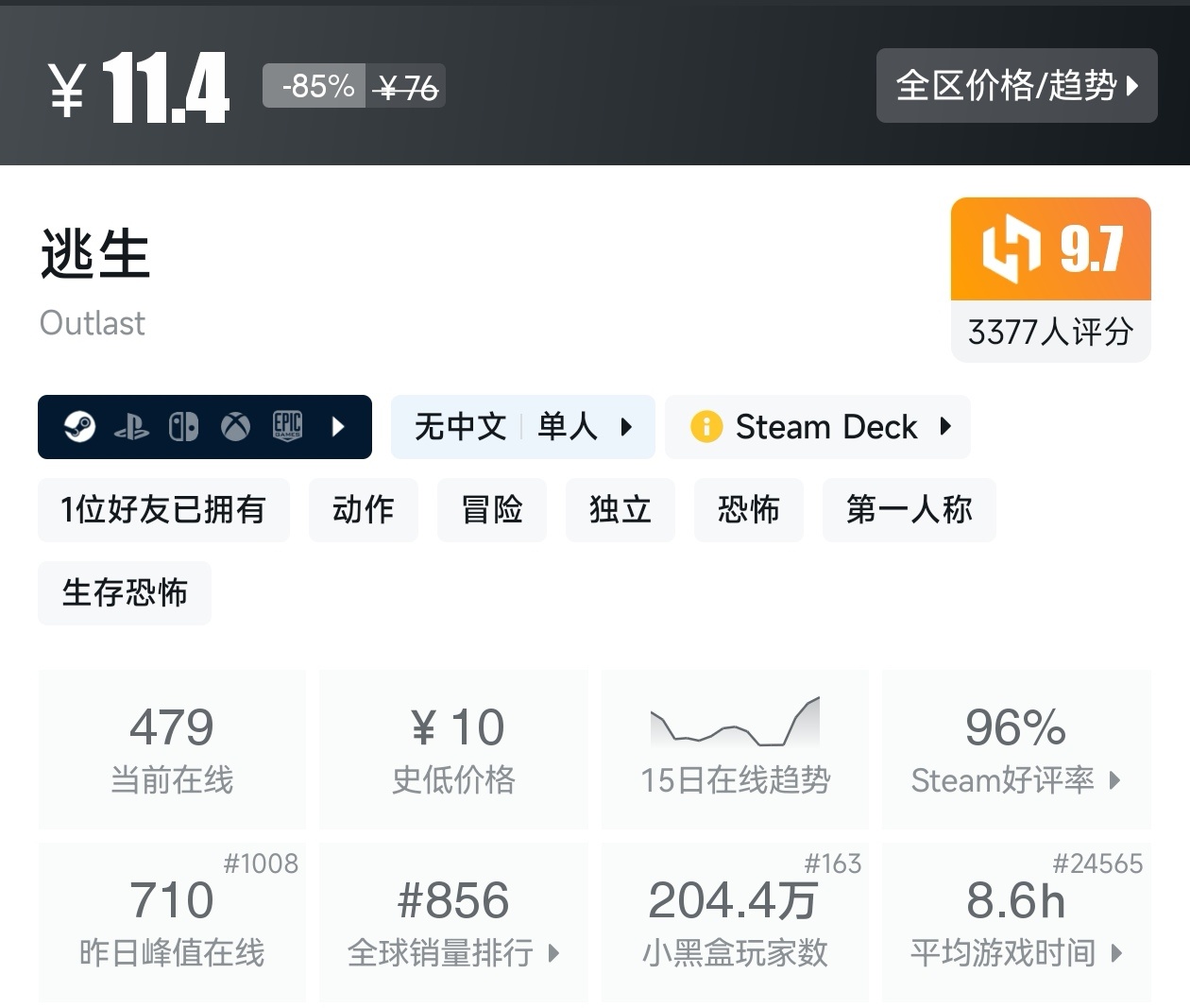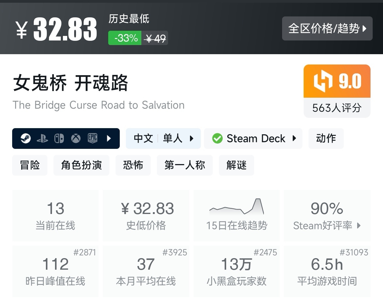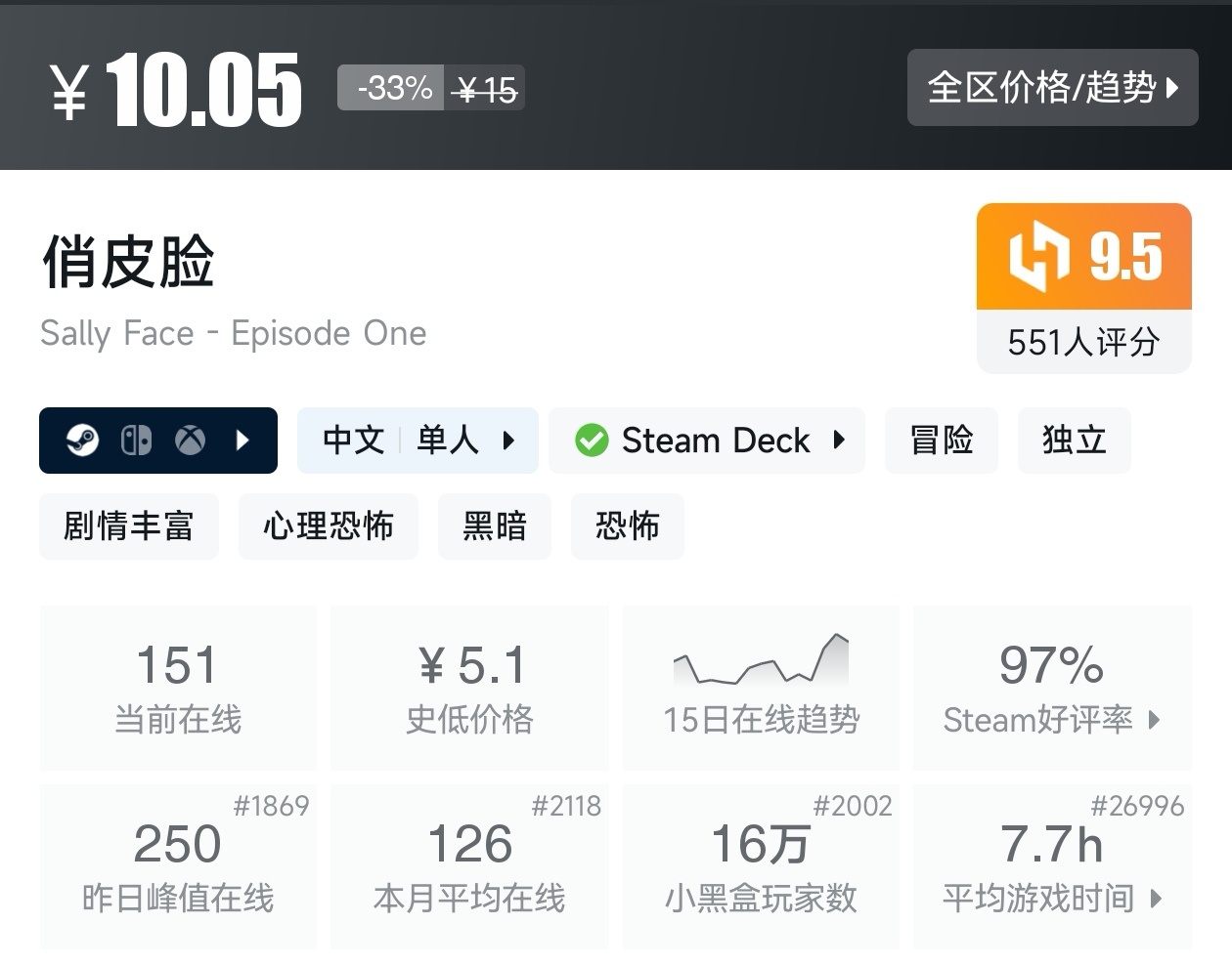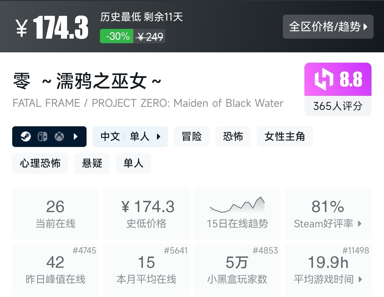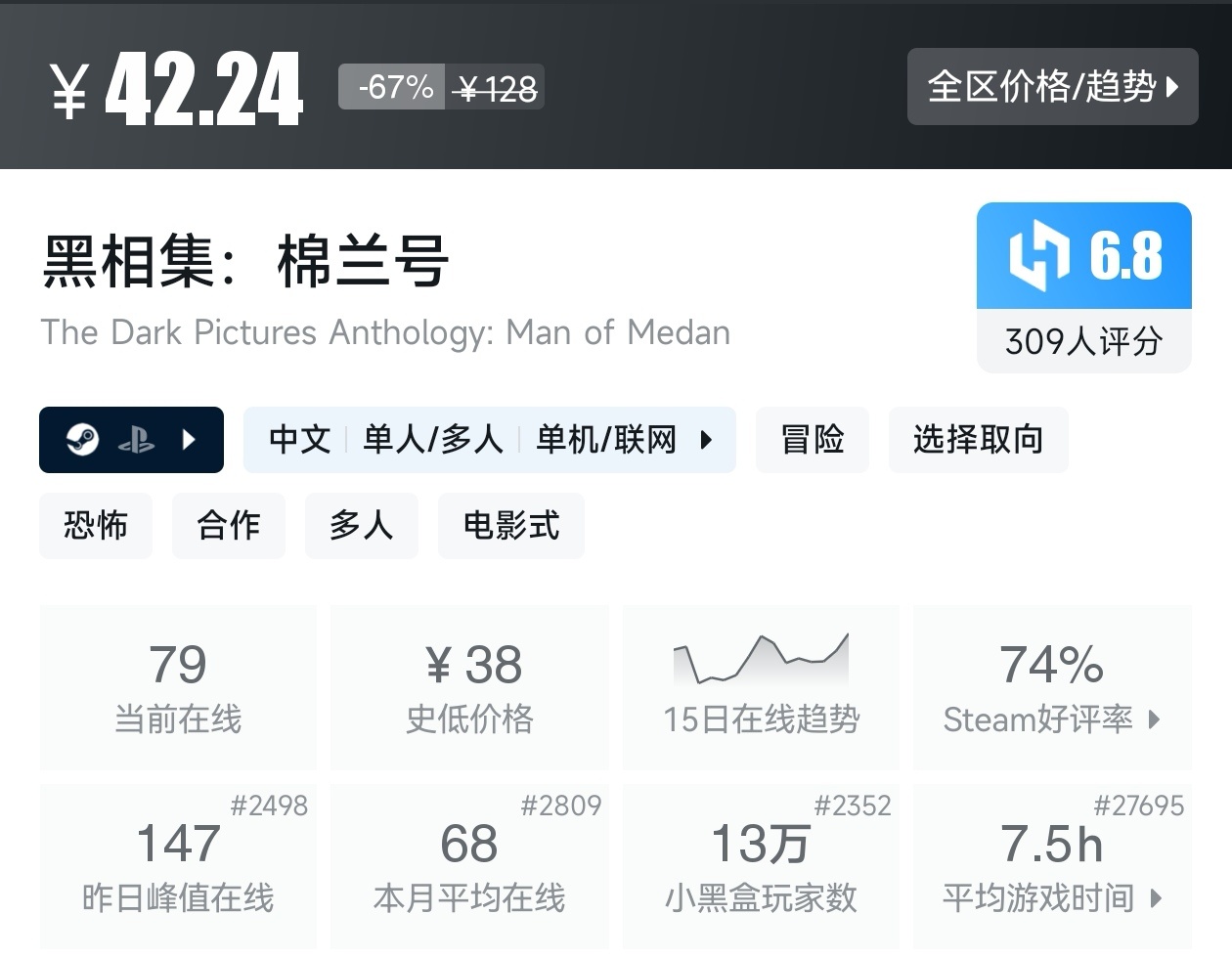 大家好,继几种类型的游戏折扣汇总后,我们来到了恐怖游戏,如果说哪种类型的游戏带给人的情绪波动最明显,那无疑是恐怖游戏了,让你害怕是实实在在的,但是爱玩也是真的,又怕又喜欢,希望我的汇总,能够帮助到各位盒友挑选心仪的游戏。