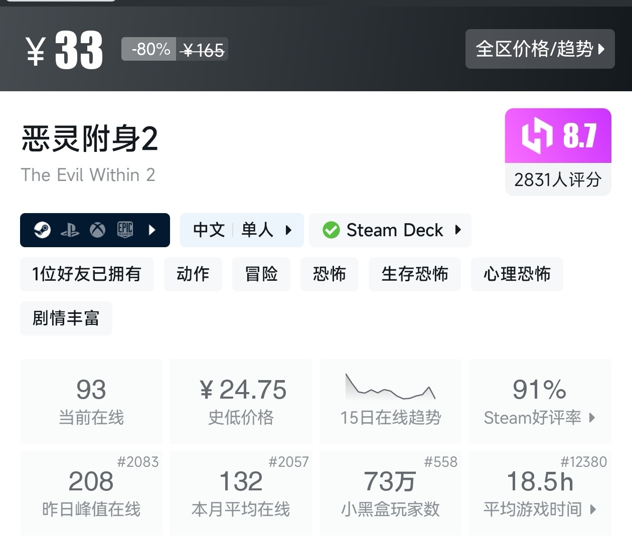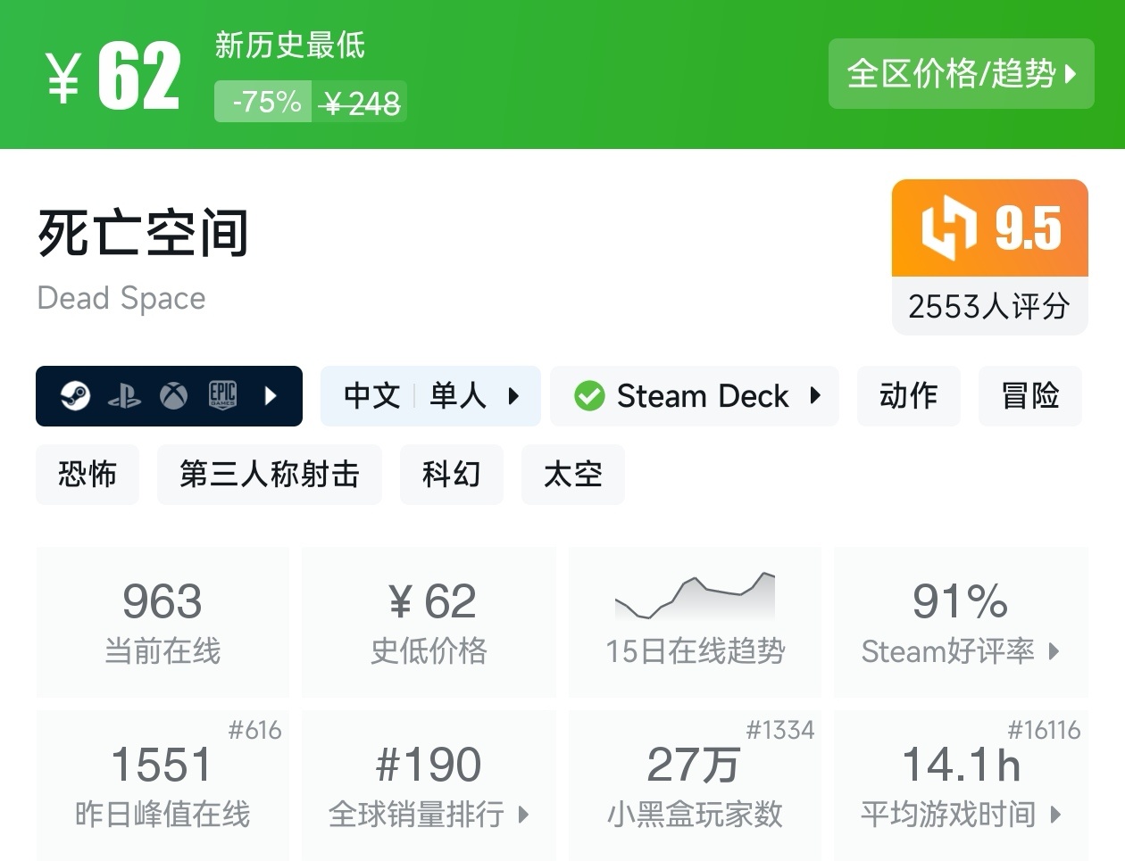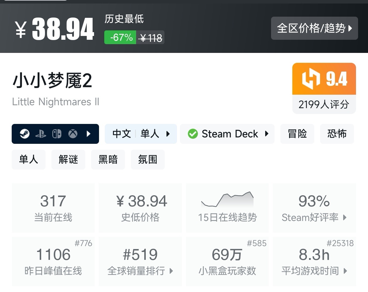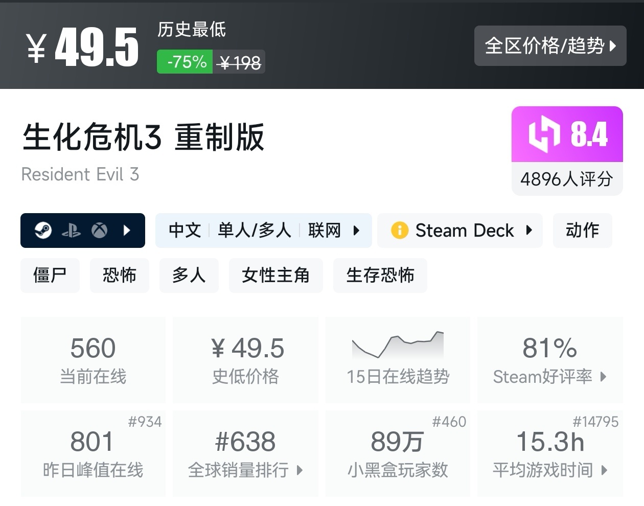 大家好,继几种类型的游戏折扣汇总后,我们来到了恐怖游戏,如果说哪种类型的游戏带给人的情绪波动最明显,那无疑是恐怖游戏了,让你害怕是实实在在的,但是爱玩也是真的,又怕又喜欢,希望我的汇总,能够帮助到各位盒友挑选心仪的游戏。