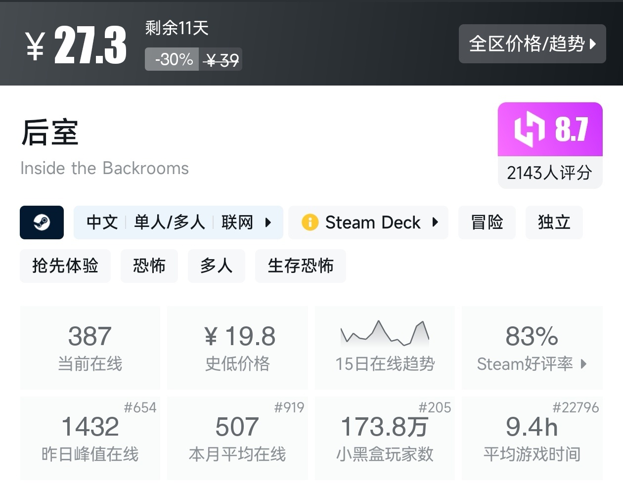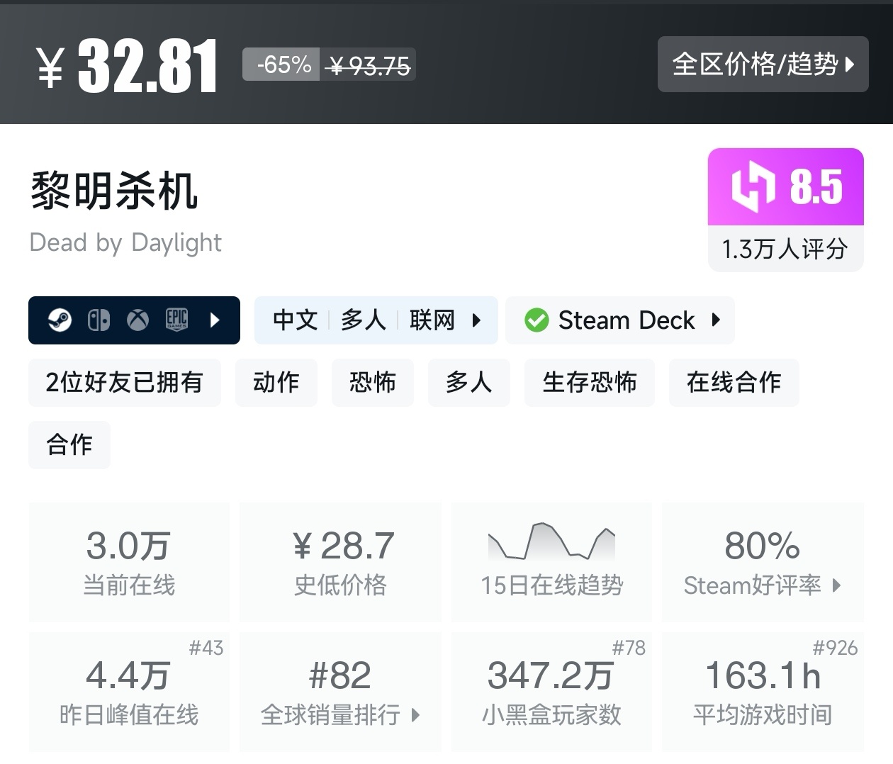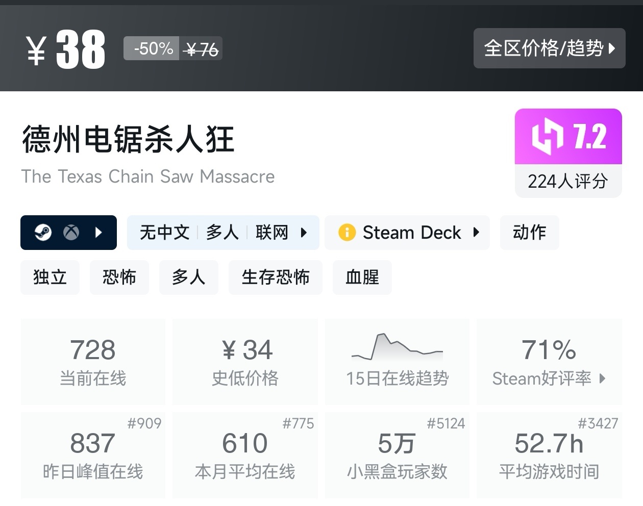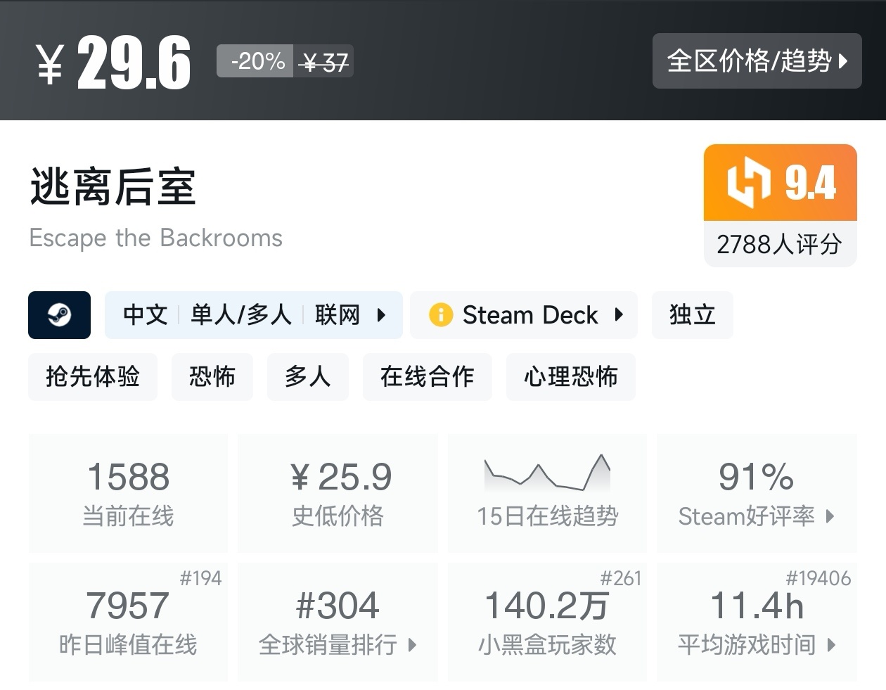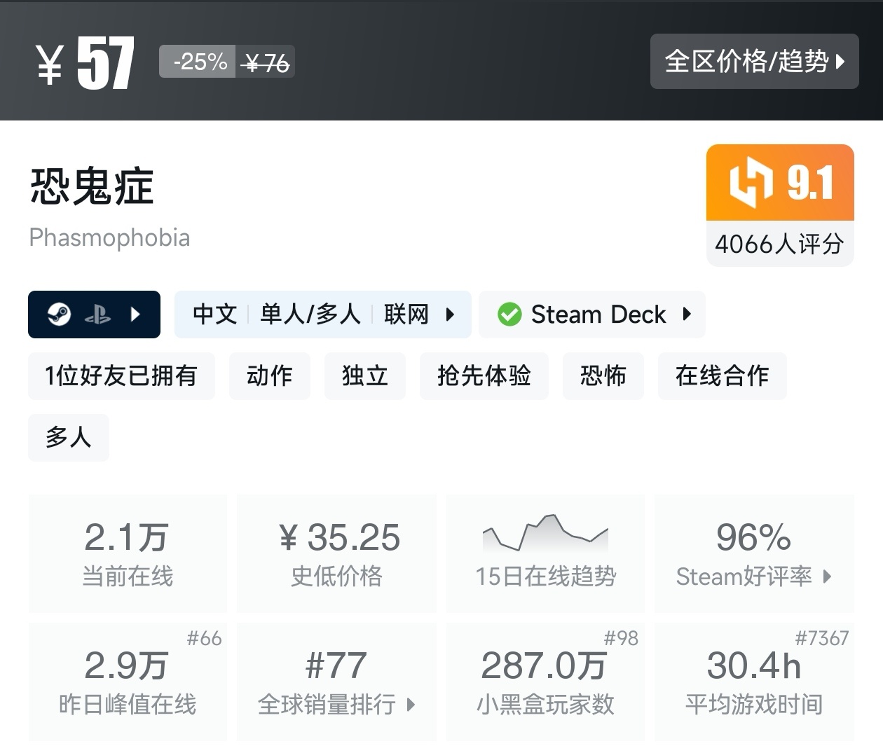 大家好,继几种类型的游戏折扣汇总后,我们来到了恐怖游戏,如果说哪种类型的游戏带给人的情绪波动最明显,那无疑是恐怖游戏了,让你害怕是实实在在的,但是爱玩也是真的,又怕又喜欢,希望我的汇总,能够帮助到各位盒友挑选心仪的游戏。