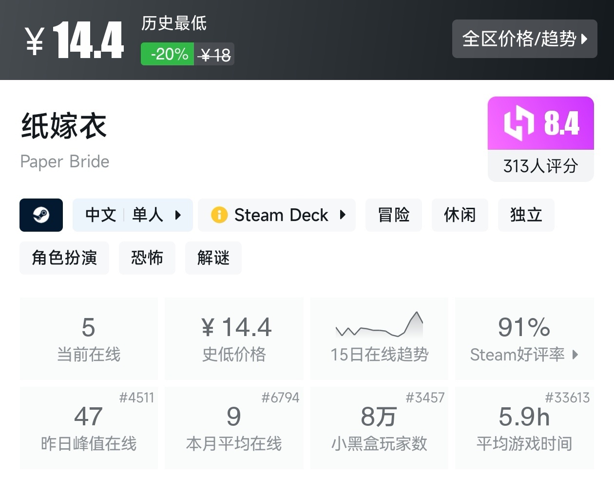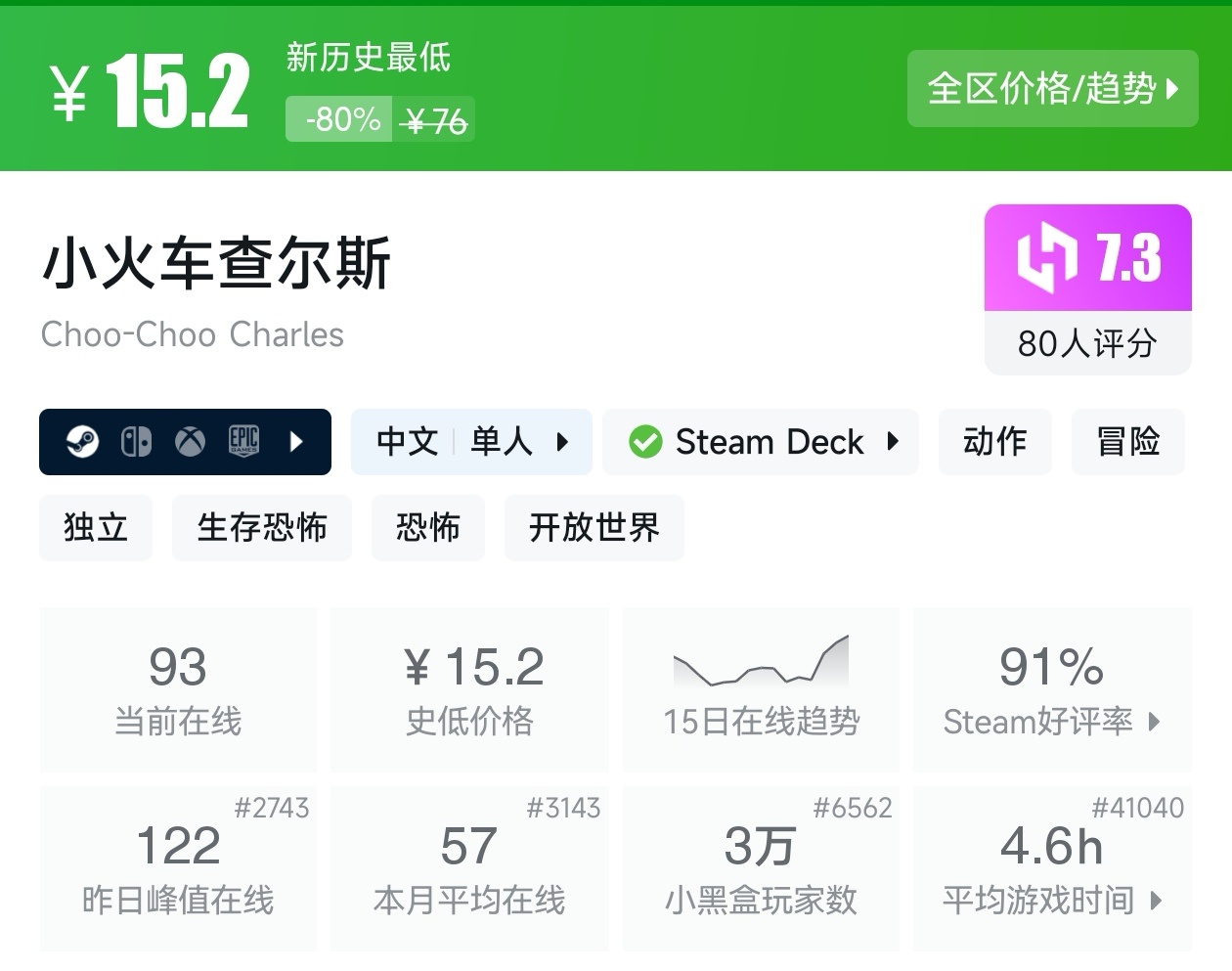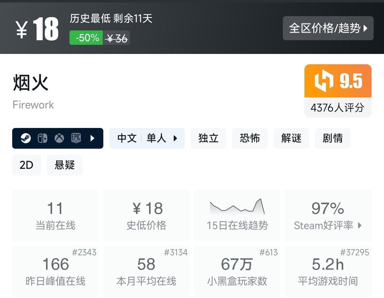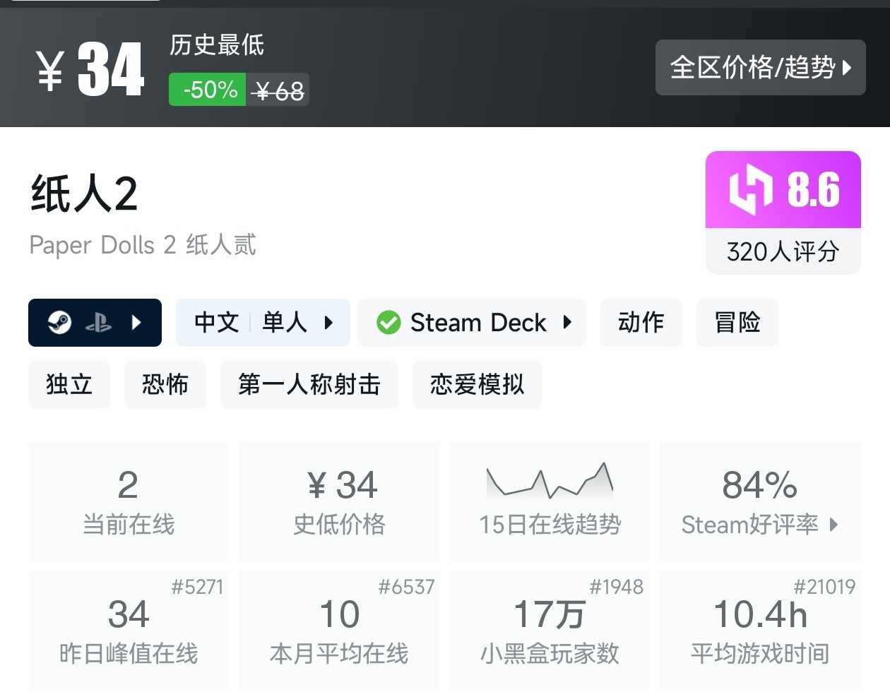 游戏的评价已经因为价格的下降而回暖了,流程虽然短,但挺好玩。