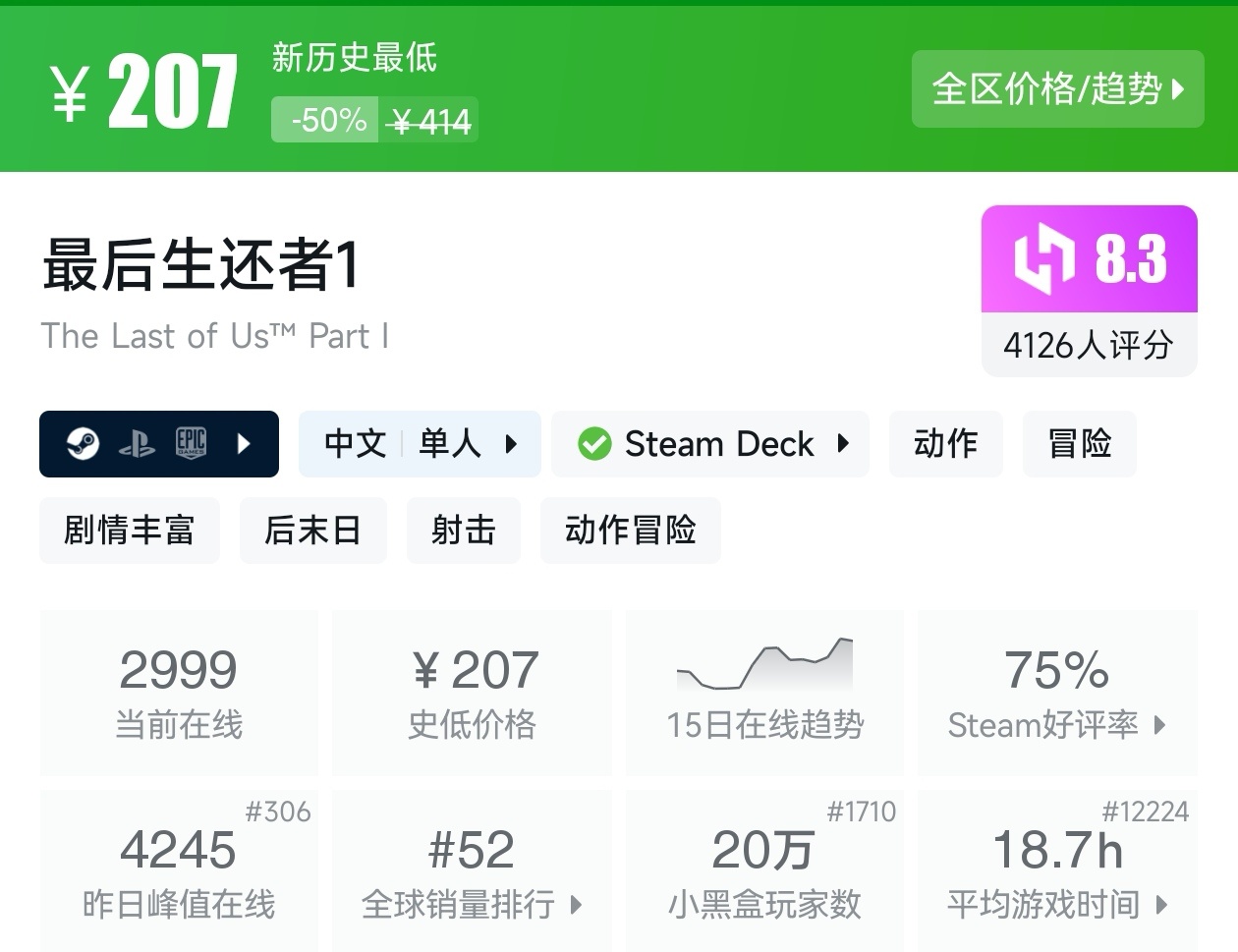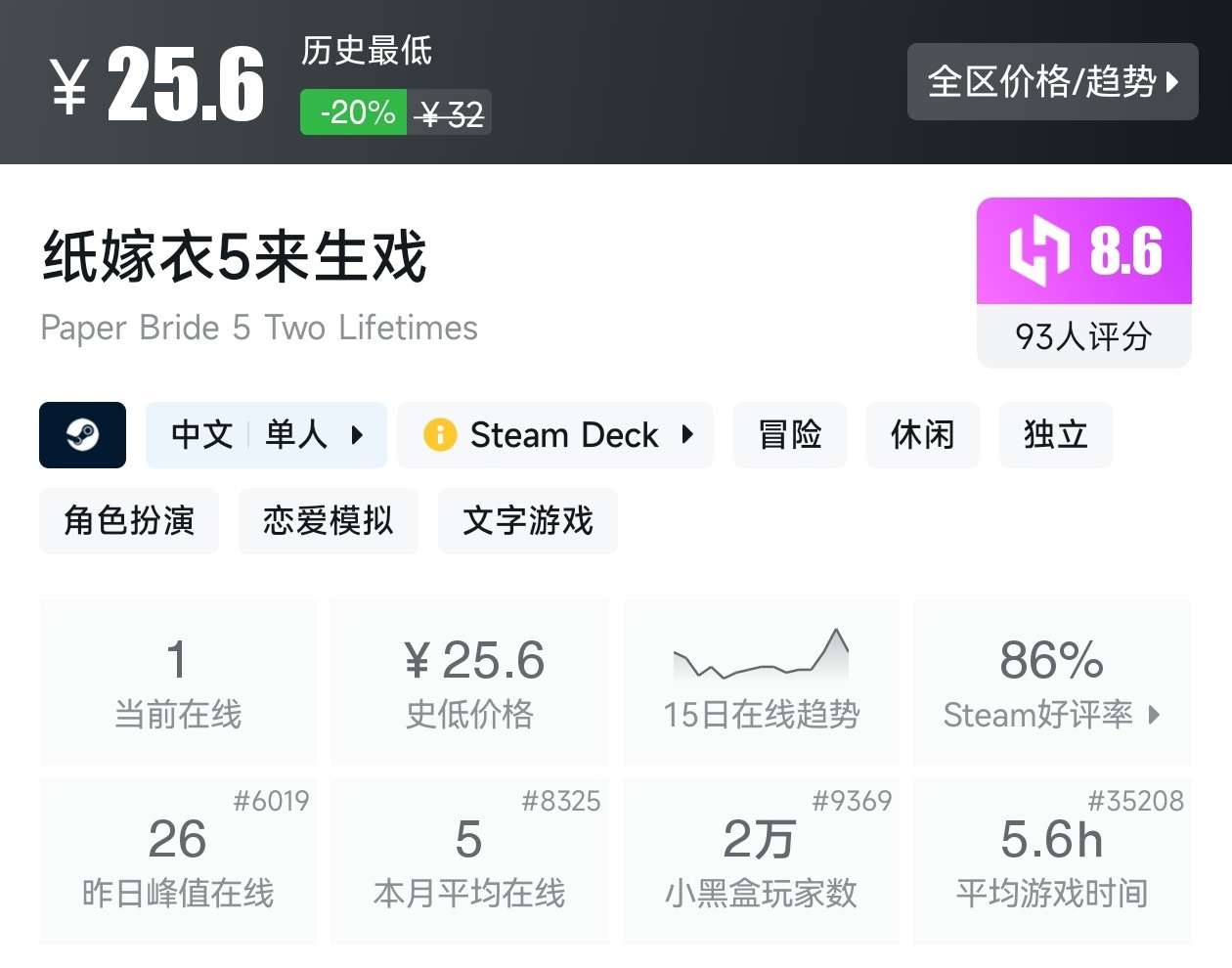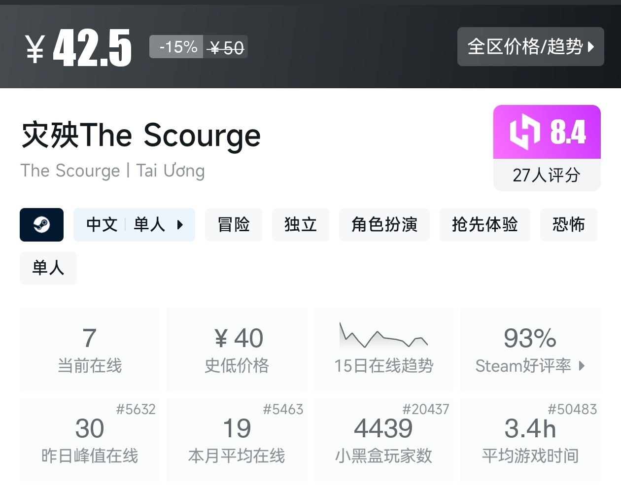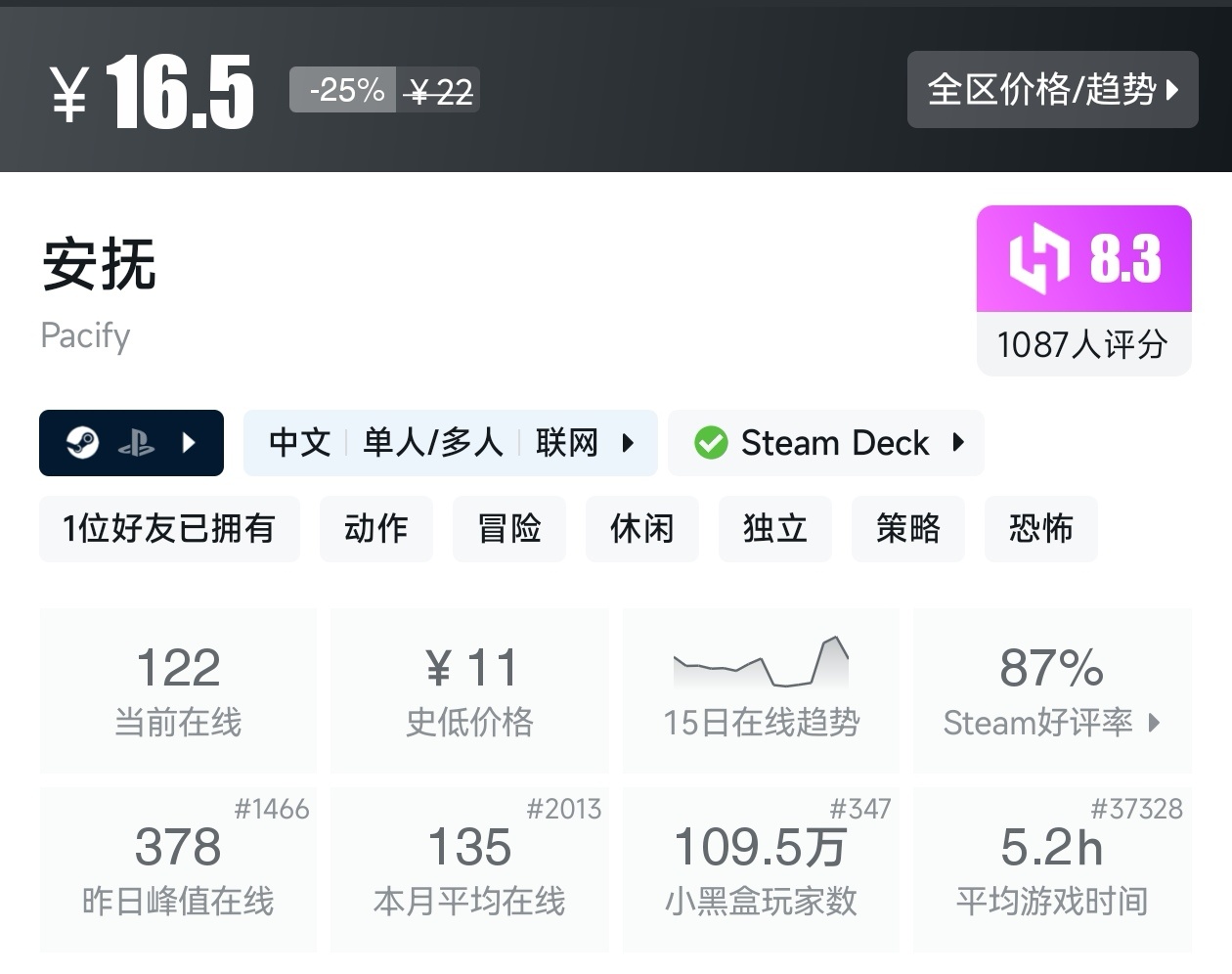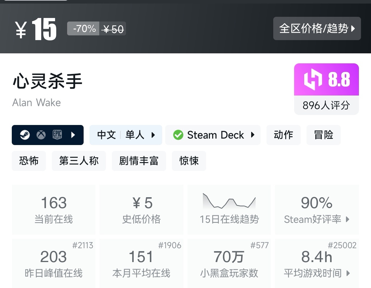 游戏的评价已经因为价格的下降而回暖了,流程虽然短,但挺好玩。