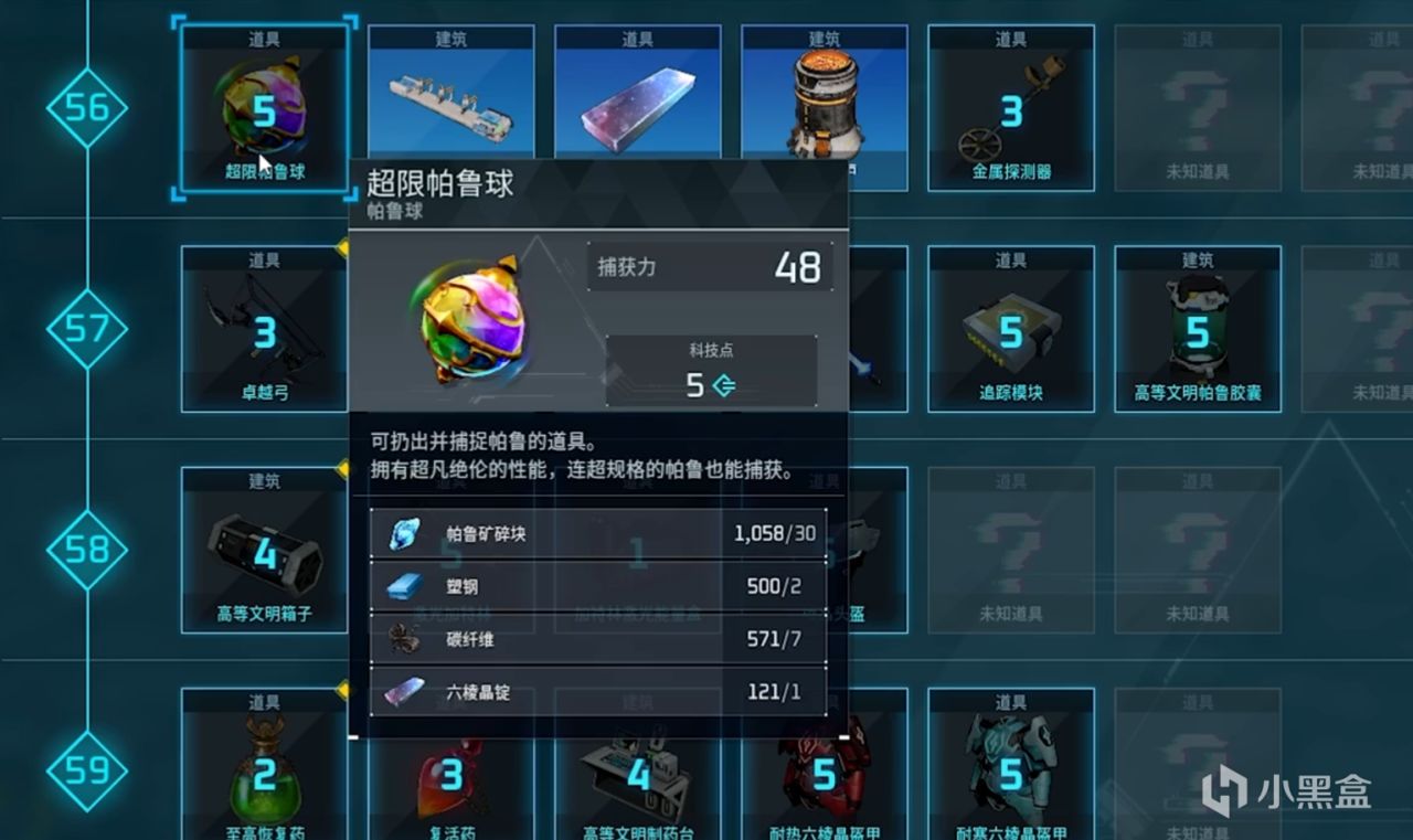 从56级开始,新增加的部分都是科技相关的东西了,比如更强的帕鲁球