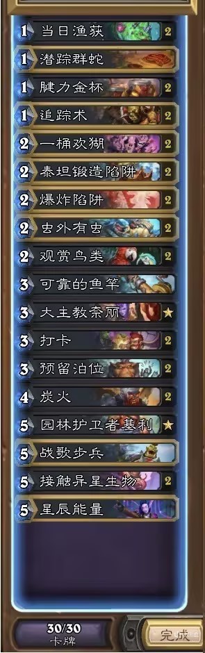 猎人的游侠斥候双倍资源,是这套牌的核心,往往能通过他来获取大量资源。