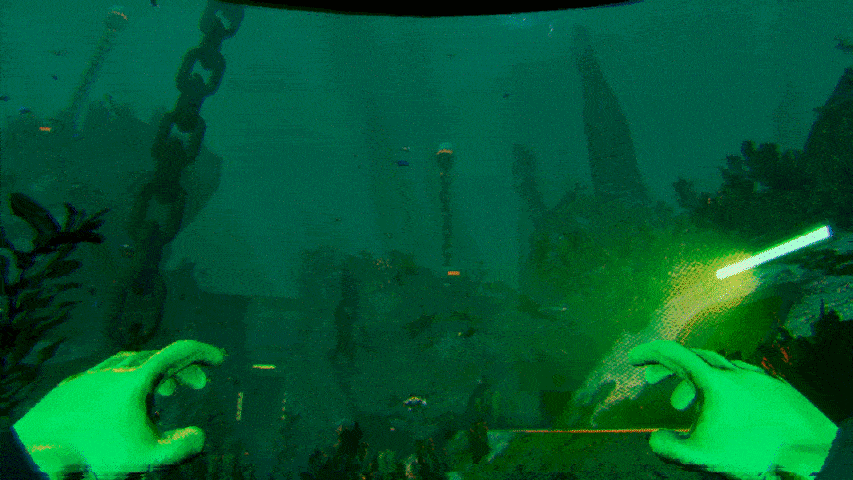 通过玩家间的距离与信号的影响来对麦克风的声音大小进行了仿照现实的设计,在深不见底的3D箱庭中,前一秒还听着队友的声音在耳边回响,下一刻你的耳边只有一片孤寂的水声。