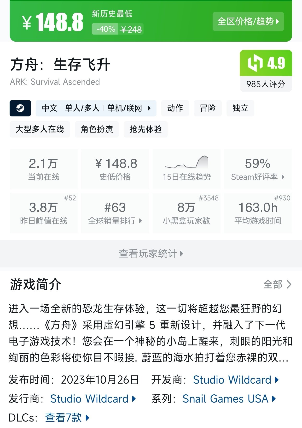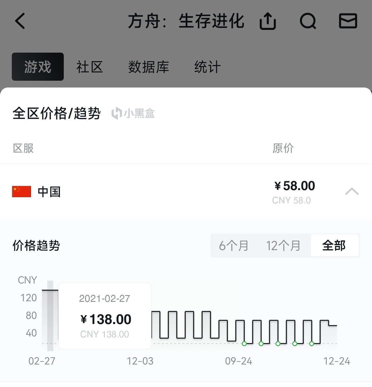 从黑盒的折扣曲线可以看出来,《方舟:生存进化》已经经历过了三次的永降。
