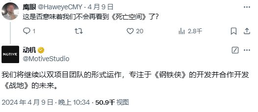 而从EA此后的调动安排来看,有关《死亡空间》的后续也变得遥遥无期。负责重制版开发的Motive工作室,在今年宣布加入《战地》系列的开发团队,消息一出,也有人也提问起了《死亡空间》的未来,Motive则表示他们未来会划分出两个团队,只是接手的项目和《死亡空间》已经毫无关联。