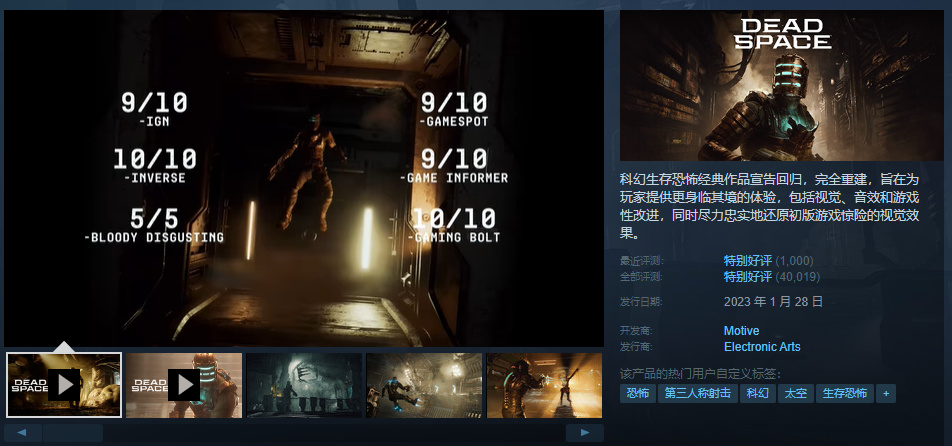 相比《木卫四协议》的滑铁卢,《死亡空间:重制版》的表现其实要好很多。游戏在玩家和媒体都有良好的口碑,截至目前在Steam上的评价数超过四万人,自发售以来一直维持着“特别好评”,从各方面来看都算不上失败,但据彭博社此前报道,游戏在商业表现上依然没能满足EA的期望。