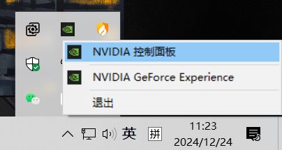 言归正传,还是说一下怎么把游戏屏幕锁60帧吧,这里以N卡为例(win10系统,个人用不习惯win11,所以没升级),在桌面右下角隐藏的图标里面,找到N卡设置,打开N卡的控制面板,如图: