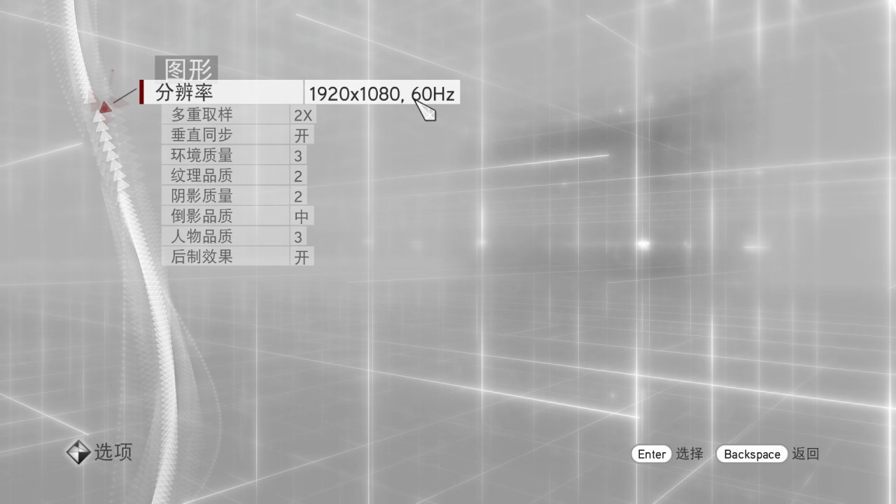 然后在游戏里为了避免设置冲突,记得进入游戏以后点Esc,然后找到“选项”–“图形”–“分辨率”,也设置为60帧。好像A卡用户如果找不到显卡设置,直接在游戏里设置也可以锁60帧,可以尝试一下,其他的我就不知道了,因为没用过A卡。