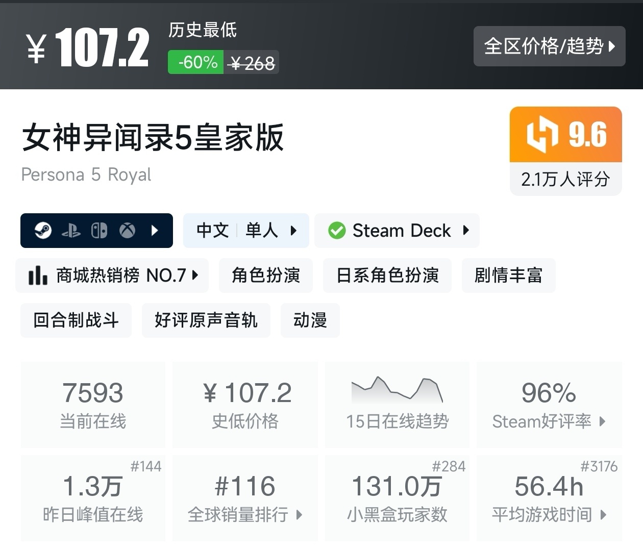 闻名天下的P5,不仅根据游戏改编的动漫很出圈,游戏本身同样在游戏界为独一档的存在,以其高质量大体量而著称,拥有极佳的音乐与画面。