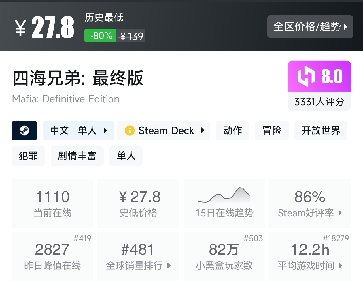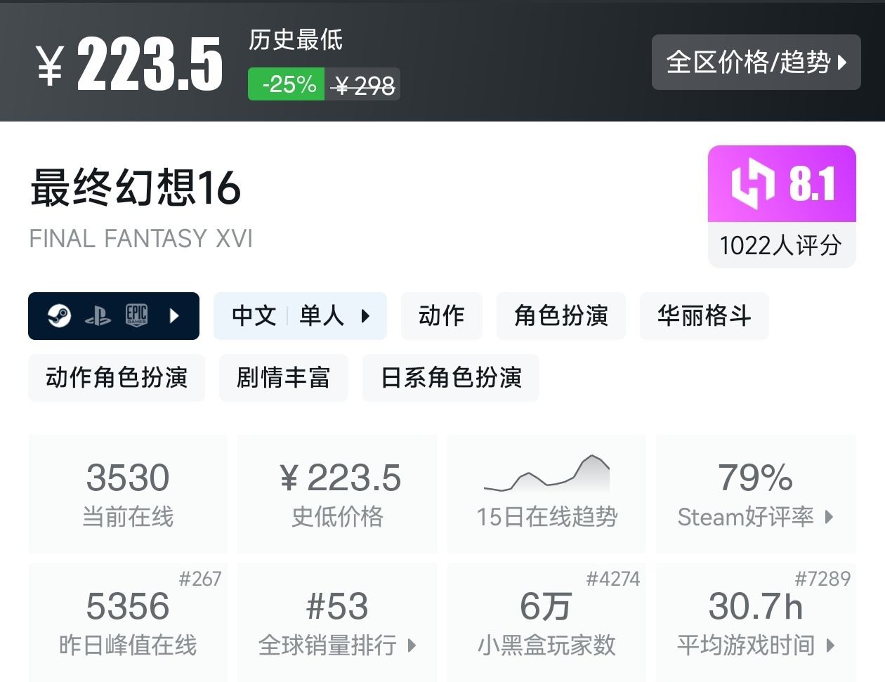 大家好,不知不觉,我们的冬促的不同类型的折扣汇总就到了线性游戏了,其实我对于线性游戏现在是有一种喜欢的感觉了,就像我之前和朋友说的那样,我开放世界玩多了,偶尔玩一玩线性游戏,觉得很不错,玩起来不会那么累人,希望我的汇总,能够帮助到各位盒友挑选心仪的游戏。