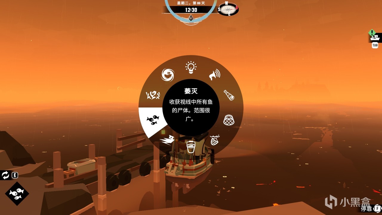 更重要的是,后期的地图即便在白天也是危机四伏。鲜红的小鱼们簇拥着为渔船带上沉重的镣铐,潜藏于深海的触手轻易就能穿透每一个来此索取之人。在作死了几次之后,我终于学会夹紧尾巴小心前行。