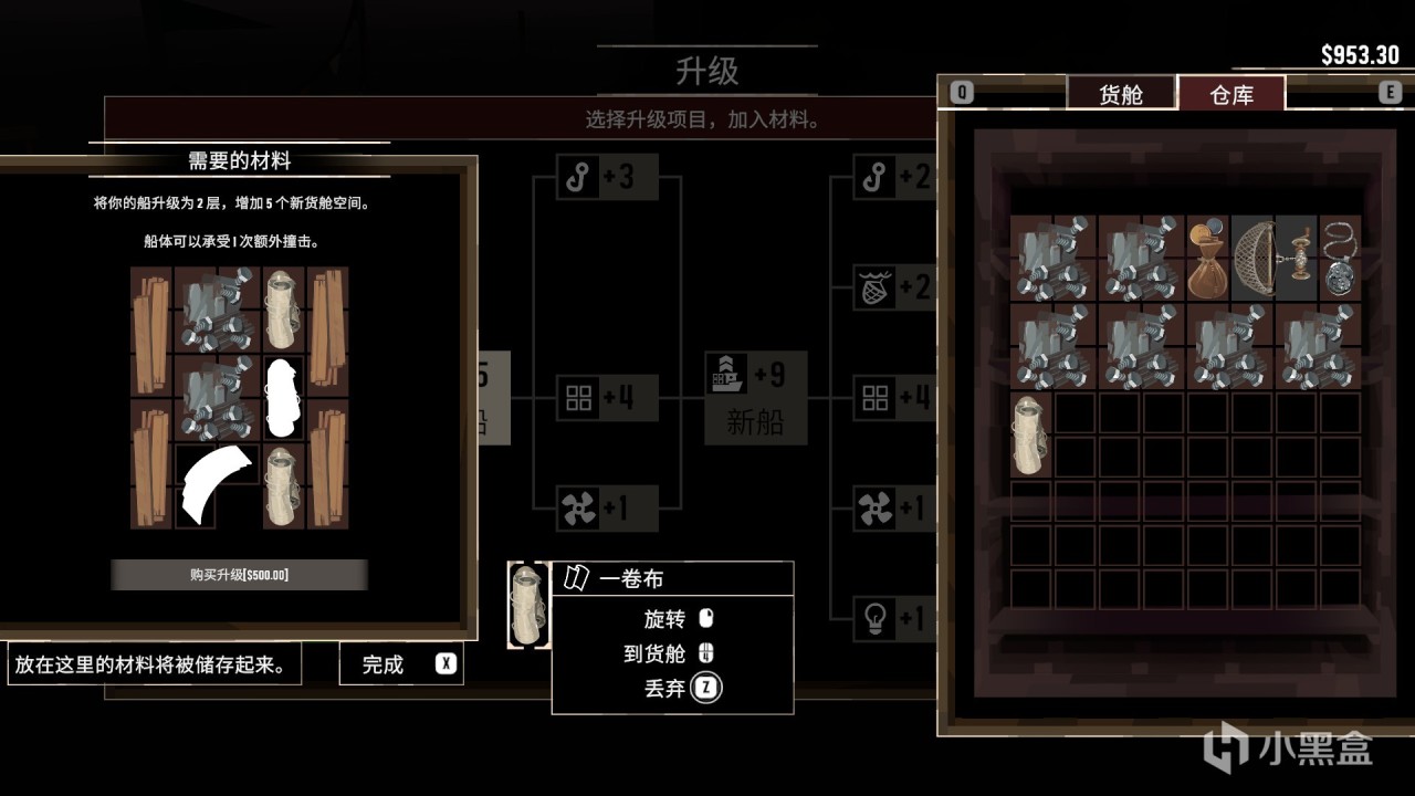 为了做大做强,玩家不仅要对装备进行更新换代,还需要利用残骸中打捞出的等材料升级自己的渔船。升级过的渔船将拥有更多的装备位或存储空间,但要注意,装备所占的空间和渔获是共享的,同时玩家必须对装备有所取舍,比如适用于不同海域的鱼竿。