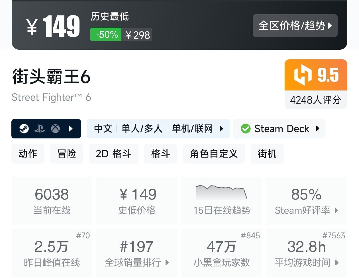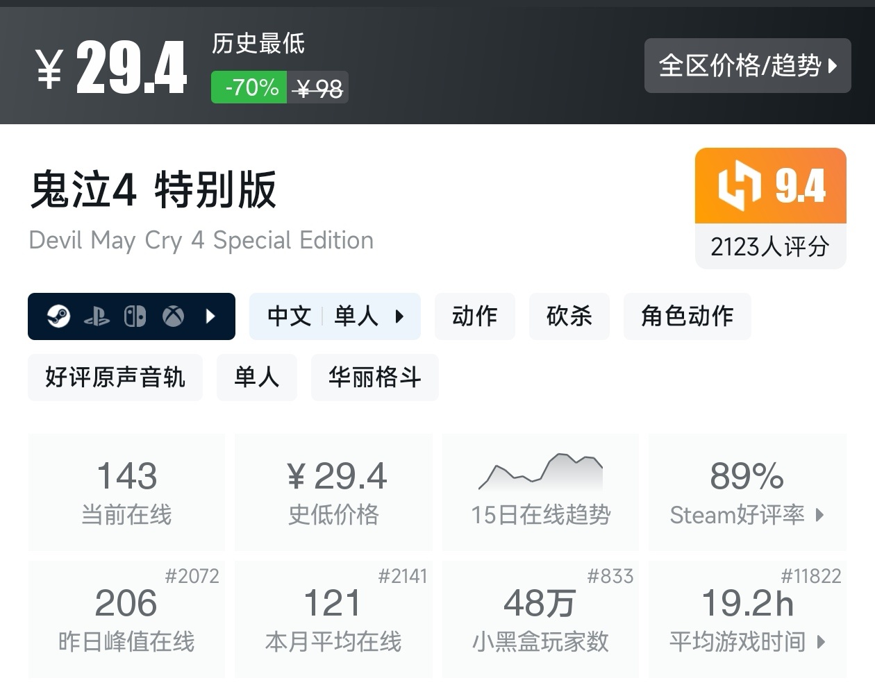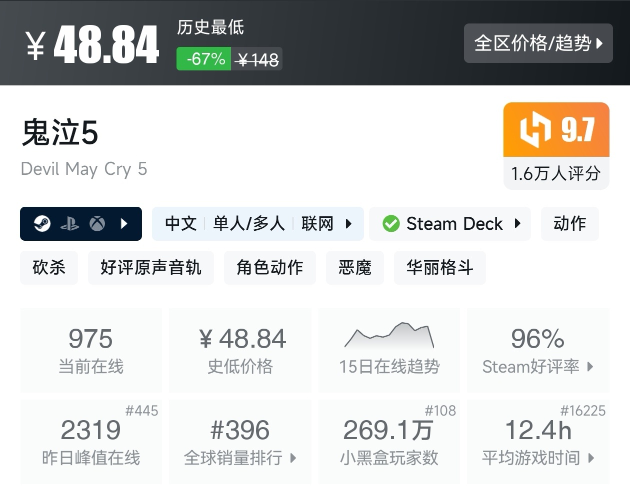 大家好,继十几种类型的游戏的折扣汇总后,我将为大家带来关于动作/格斗类型的游戏汇总,说到这个类型的游戏,大家通常都会想到一个游戏厂商,没错,就是被誉为动作天尊的卡普空,在这一期卡普空可谓是极其亮眼,希望我的汇总,能够帮助到各位盒友挑选心仪的游戏。
