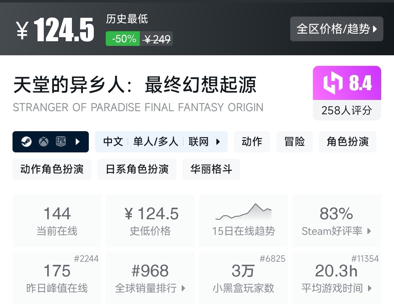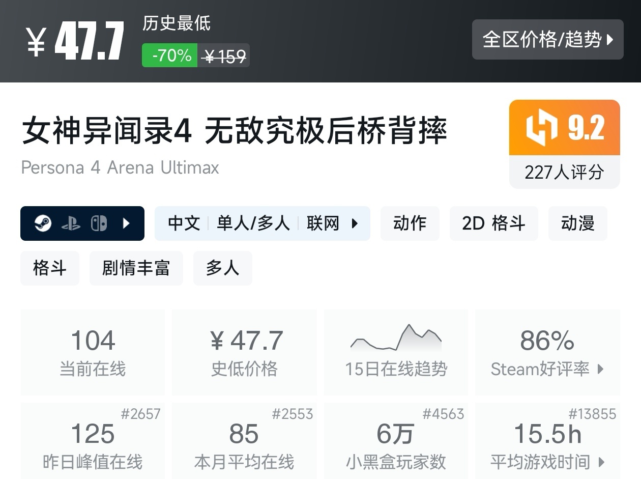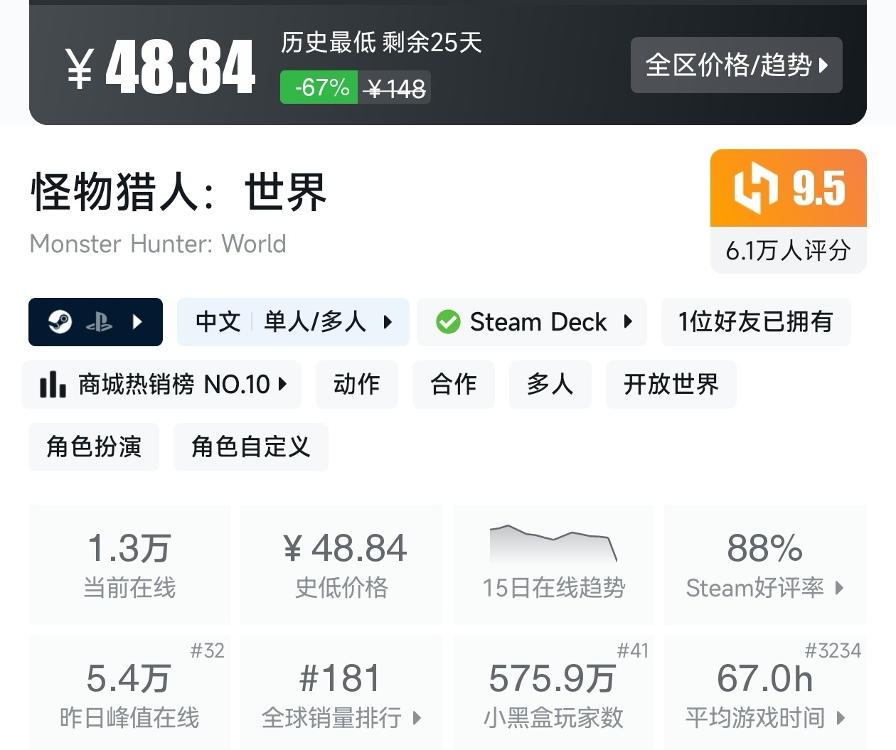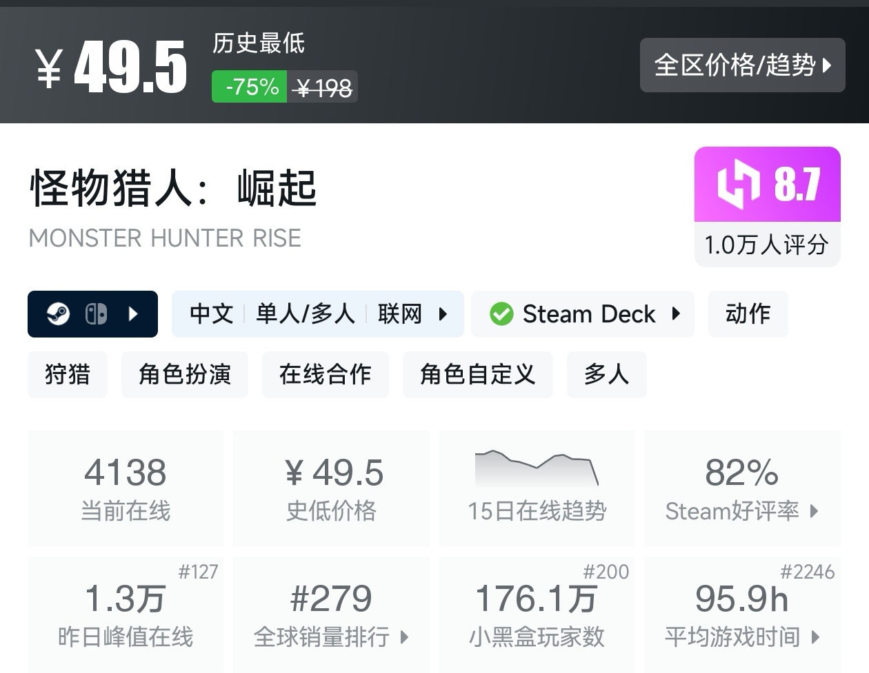 大家好,继十几种类型的游戏的折扣汇总后,我将为大家带来关于动作/格斗类型的游戏汇总,说到这个类型的游戏,大家通常都会想到一个游戏厂商,没错,就是被誉为动作天尊的卡普空,在这一期卡普空可谓是极其亮眼,希望我的汇总,能够帮助到各位盒友挑选心仪的游戏。