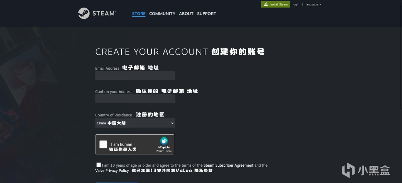 注意,不管你是在steam网页端注册账号,还是在客户端注册账号,这里都有几个要注意的点: