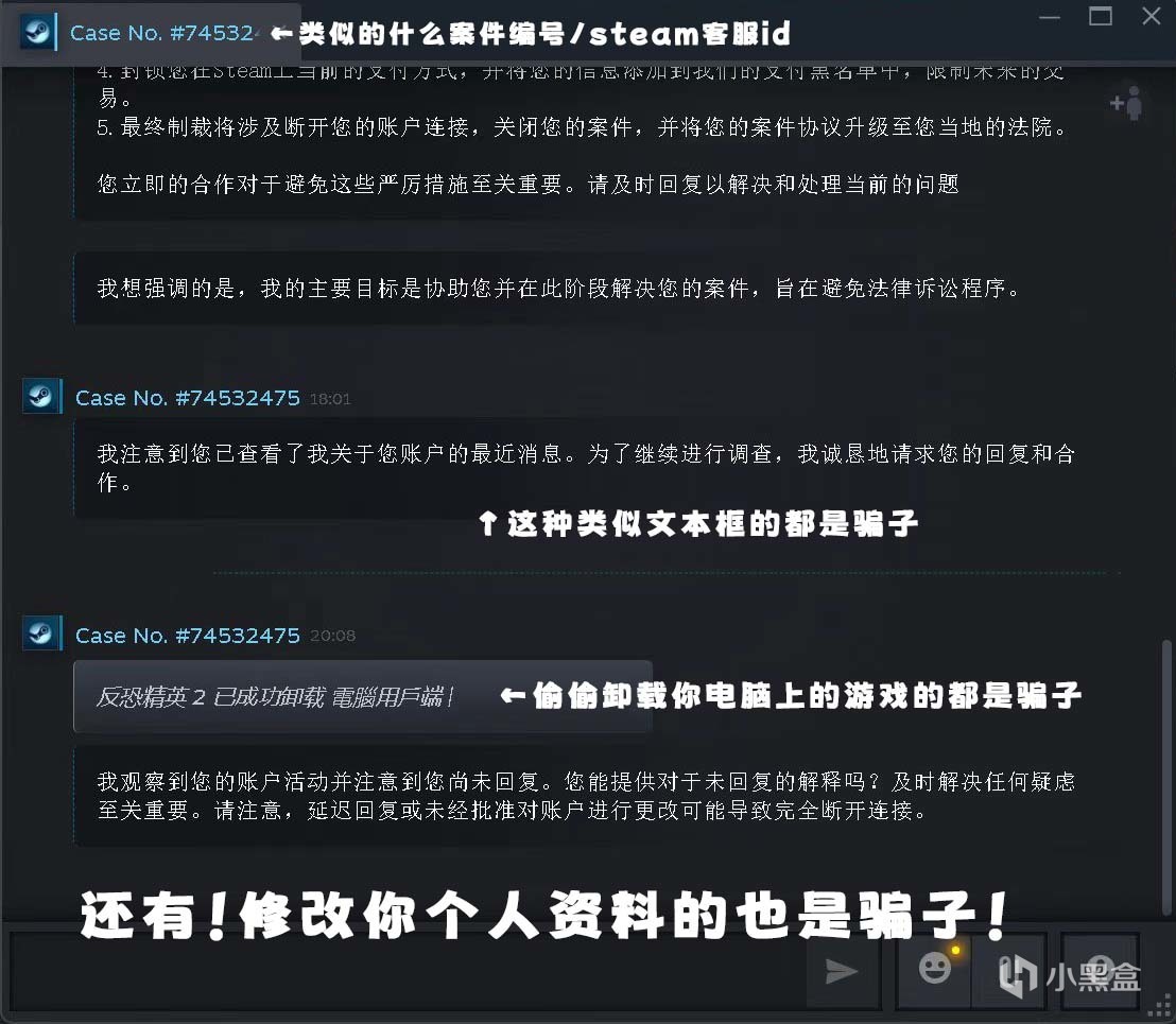 这里多嘴说一句,steam官方客服不会以加好友、发短信、打电话的任何形式要求你提供个人账户信息!!